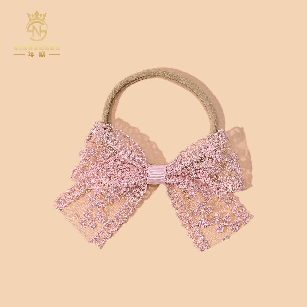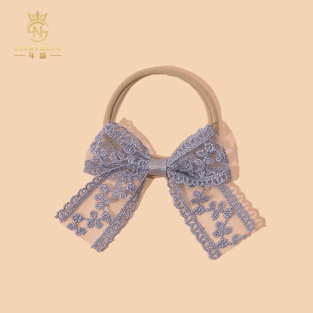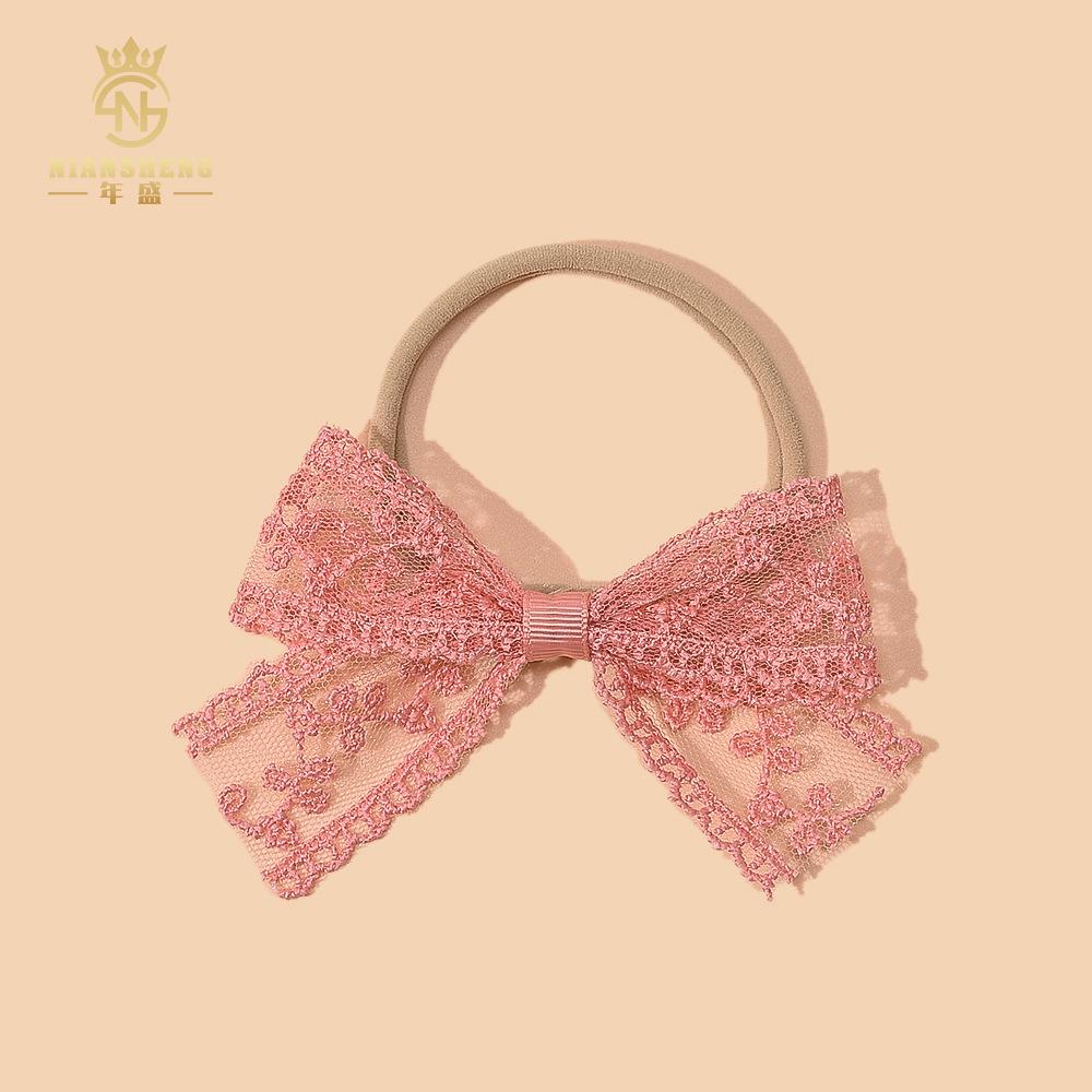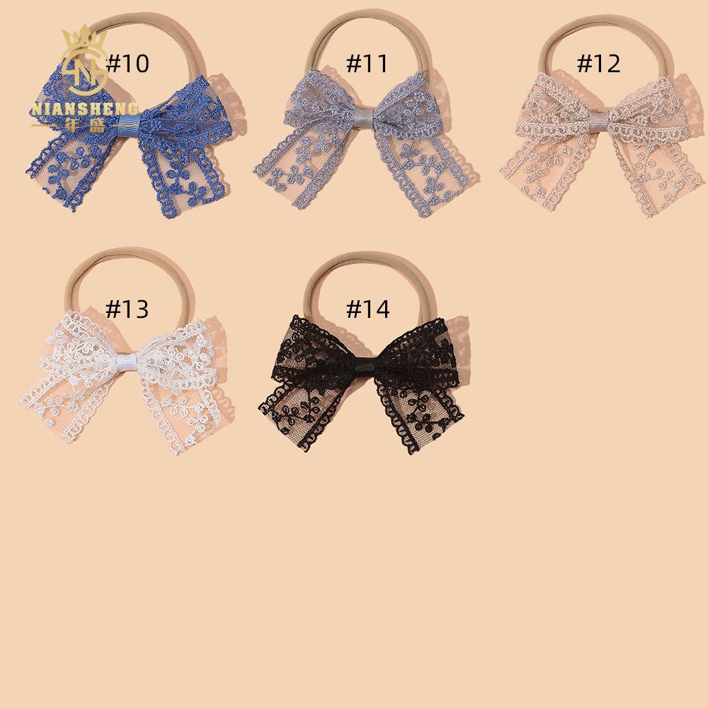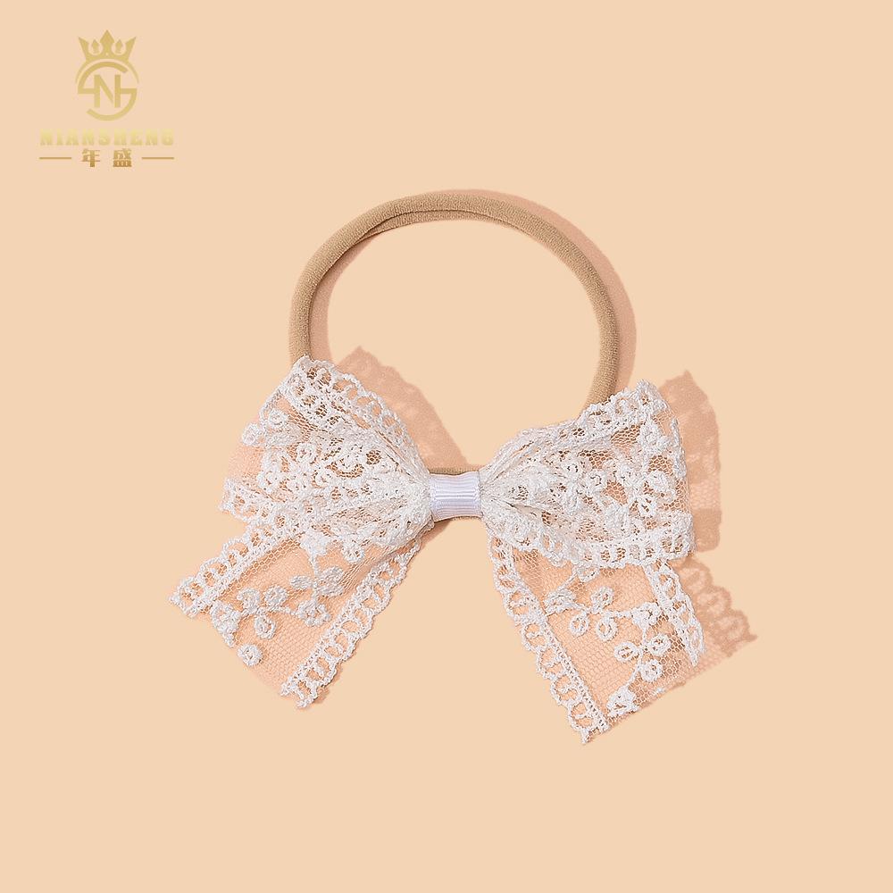 Europeu e americano novo bebê bonito laço renda fina faixa de cabelo crianças elástico náilon acessórios de cabelo bebê oco headwear
