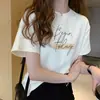 Camiseta de Manga Curta para Mulheres 2025 Verão Novo Estilo Moda Estampada Gola Redonda Top Solto Manga Curta Camiseta para Usar por Baixo