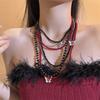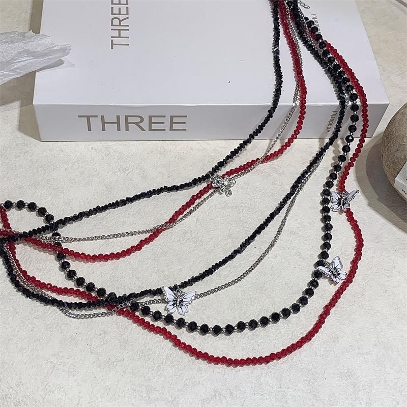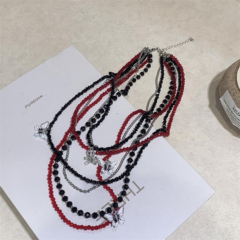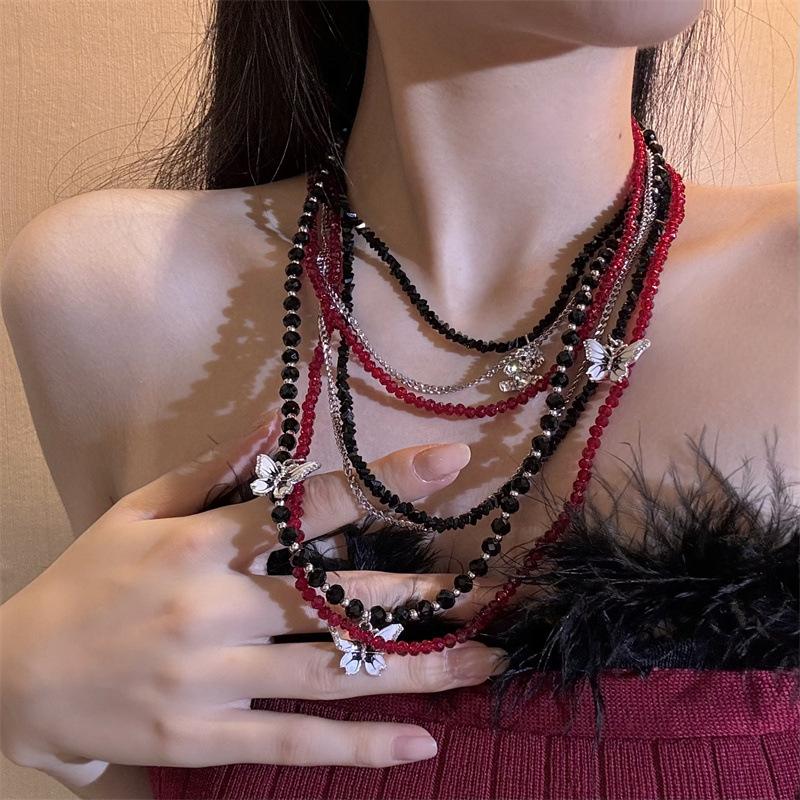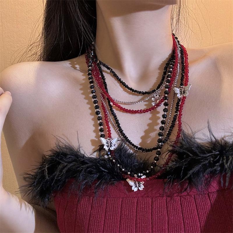 Colar de borboleta de cristal vermelho em camadas pesadas Acessórios Colar feminino gargantilha Clavícula Corrente