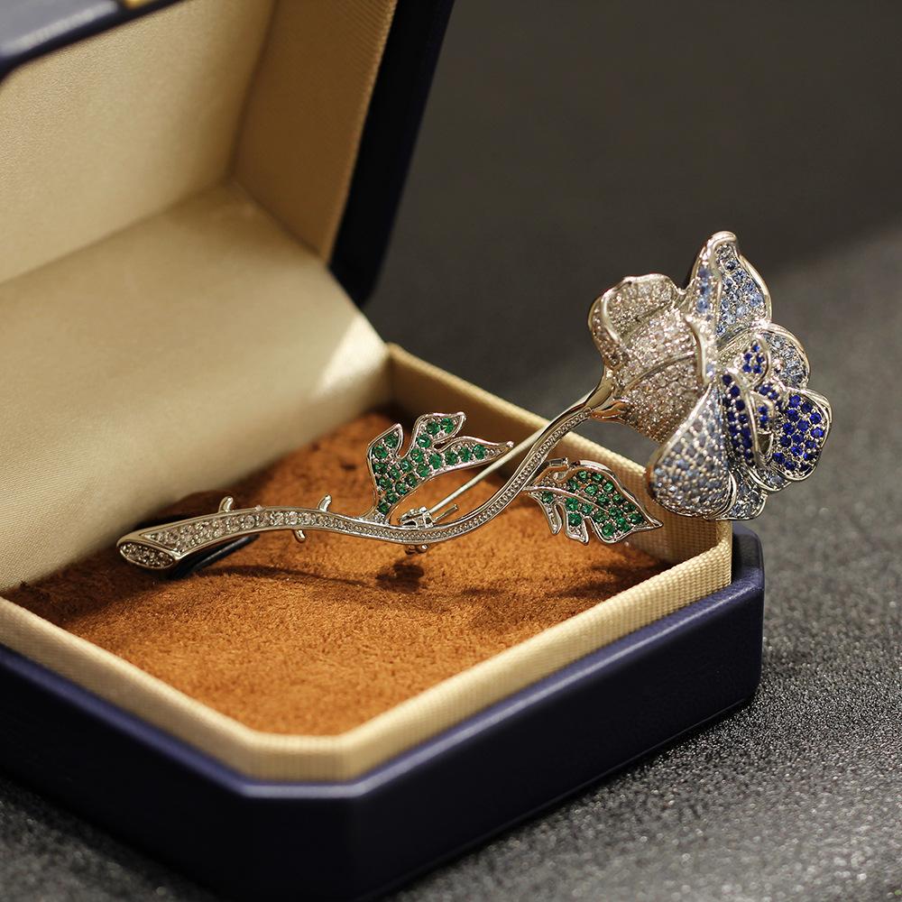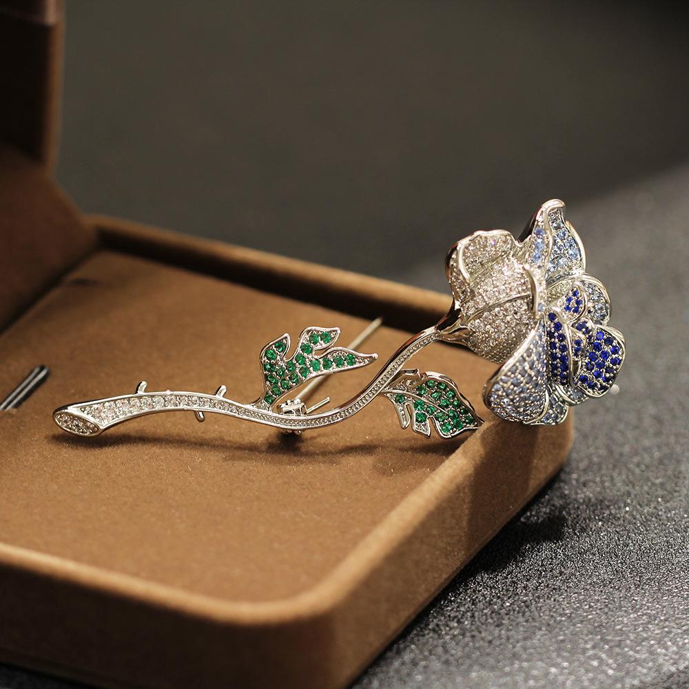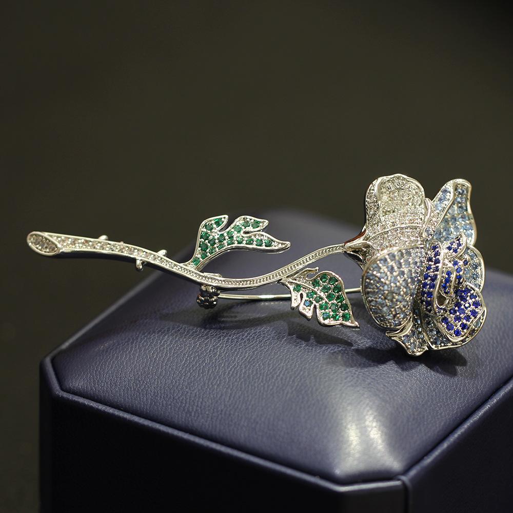 Broche francês vintage leve luxo micro-incrustado zircão azul rosa personalidade exagerada acessórios para casaco corsage feminino