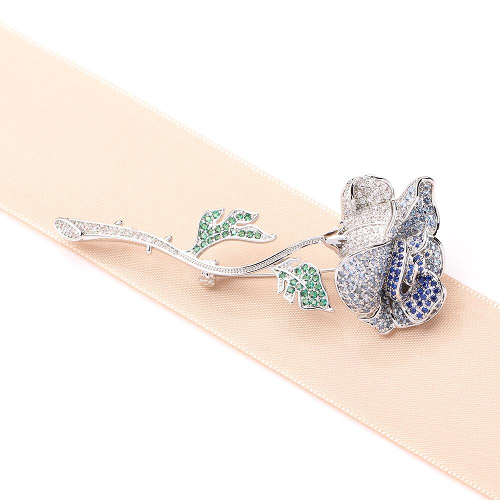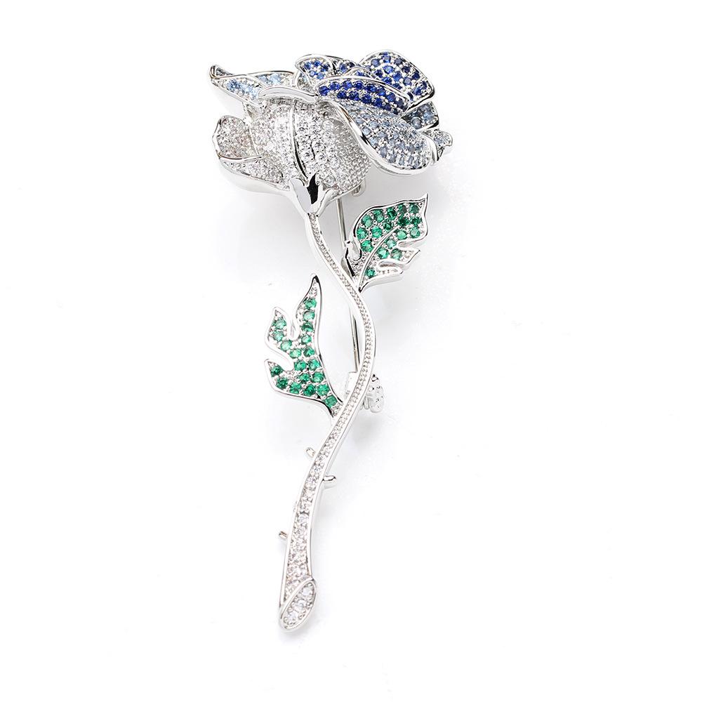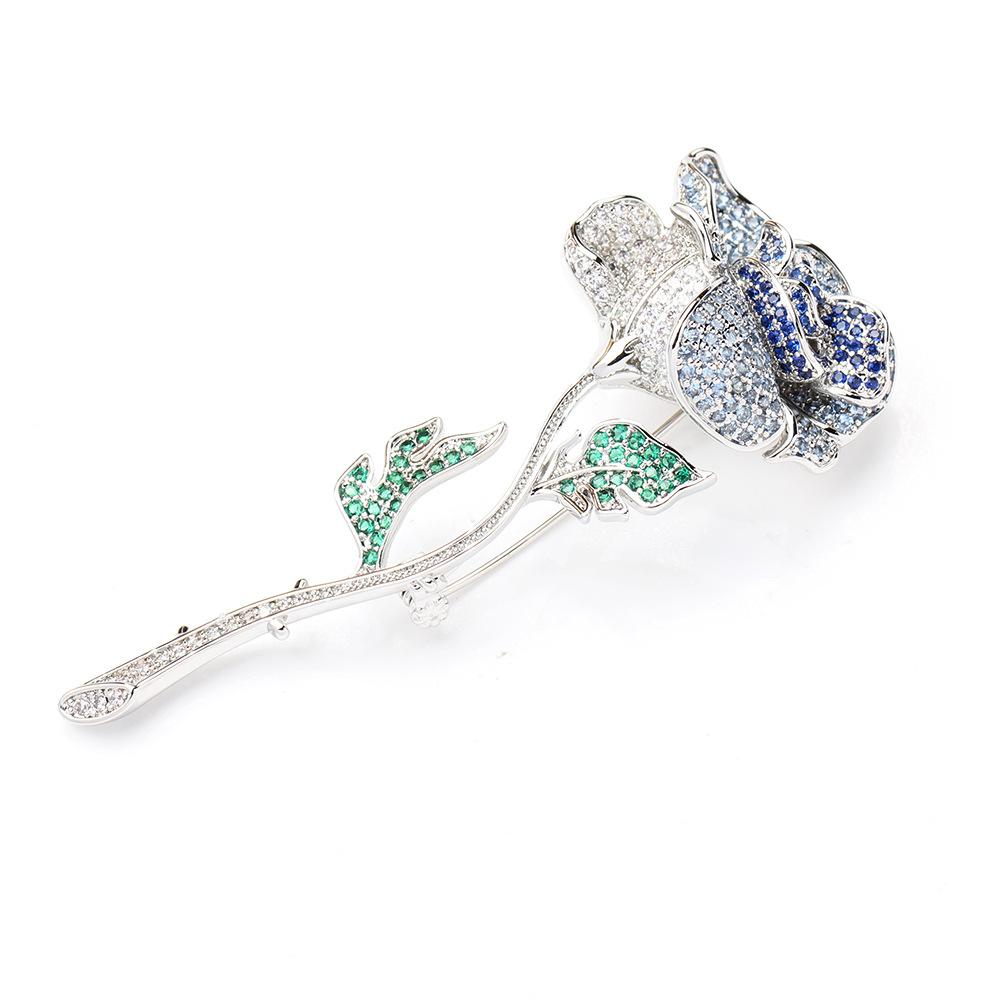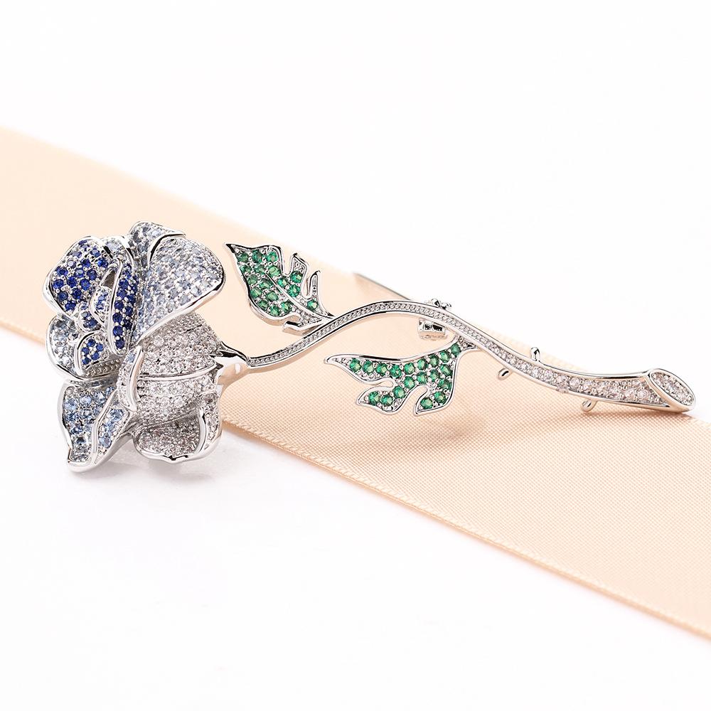 Broche francês vintage leve luxo micro-incrustado zircão azul rosa personalidade exagerada acessórios para casaco corsage feminino