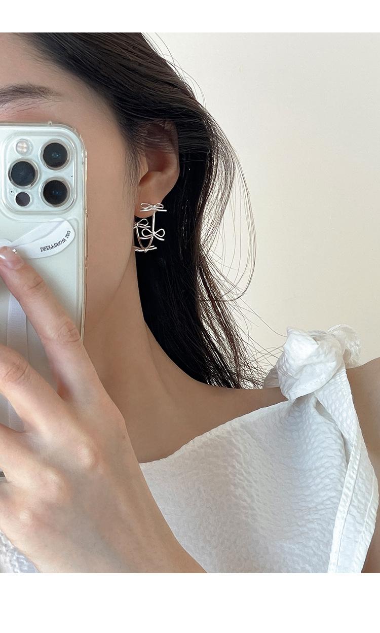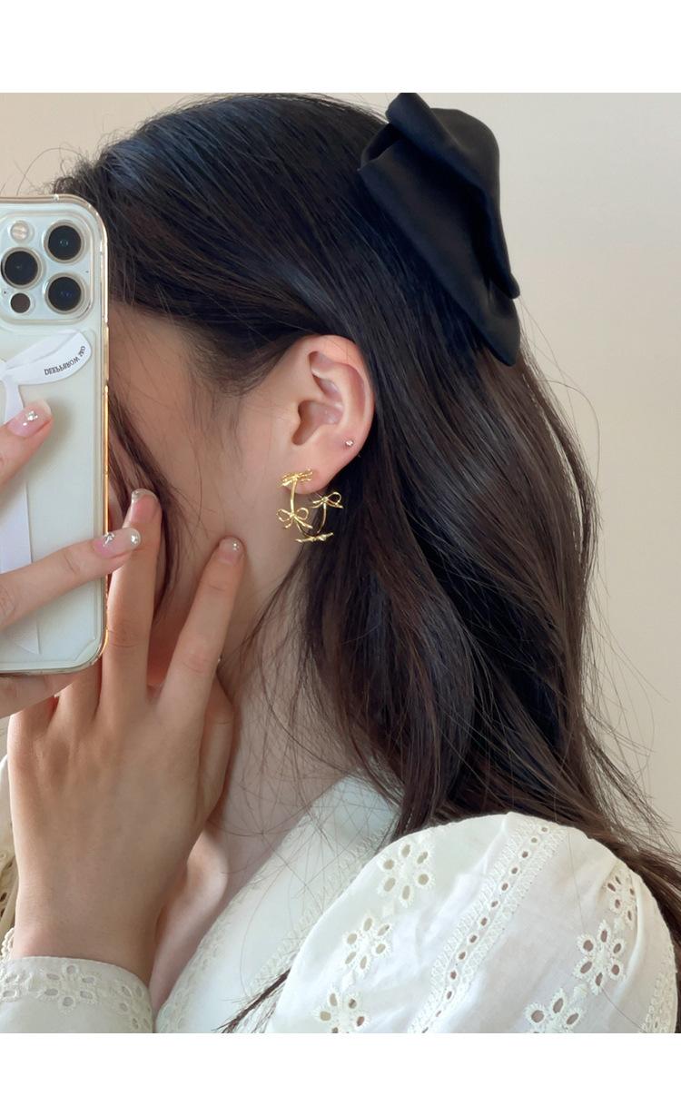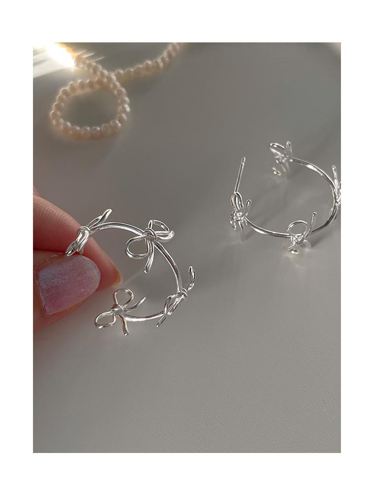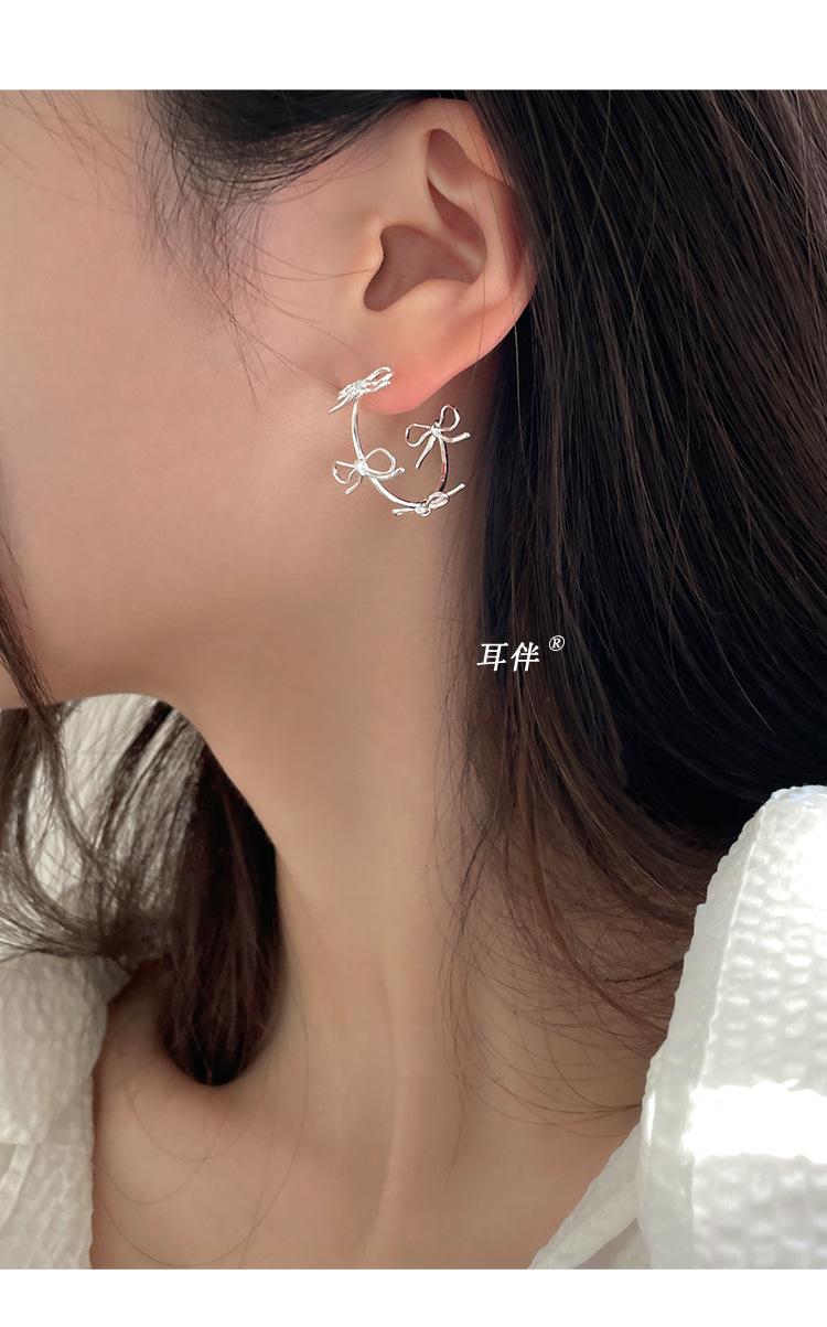 Compre Brincos Femininos Design de Nicho Brincos de Laço de Alta Qualidade Brincos Novos e Elegantes Brincos de Agulha de Prata Exclusivos Agulha de Prata 925 no atacado no Joom.pro