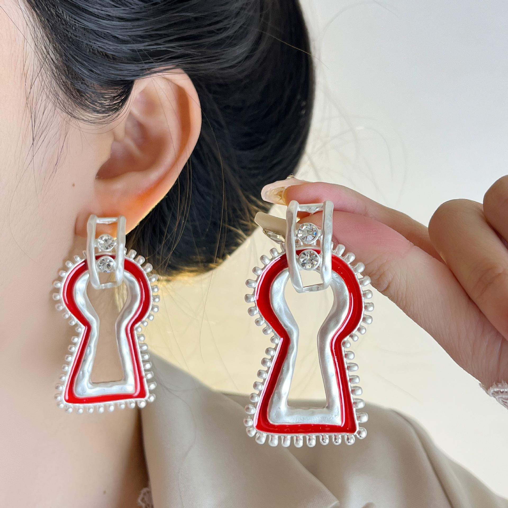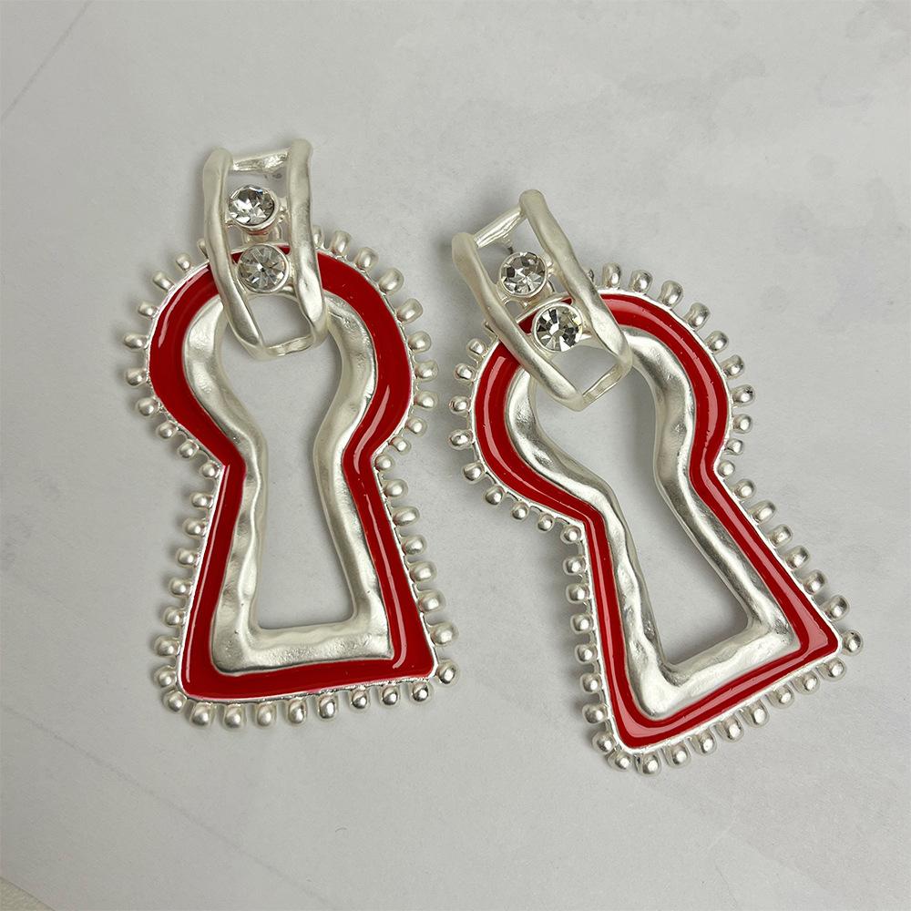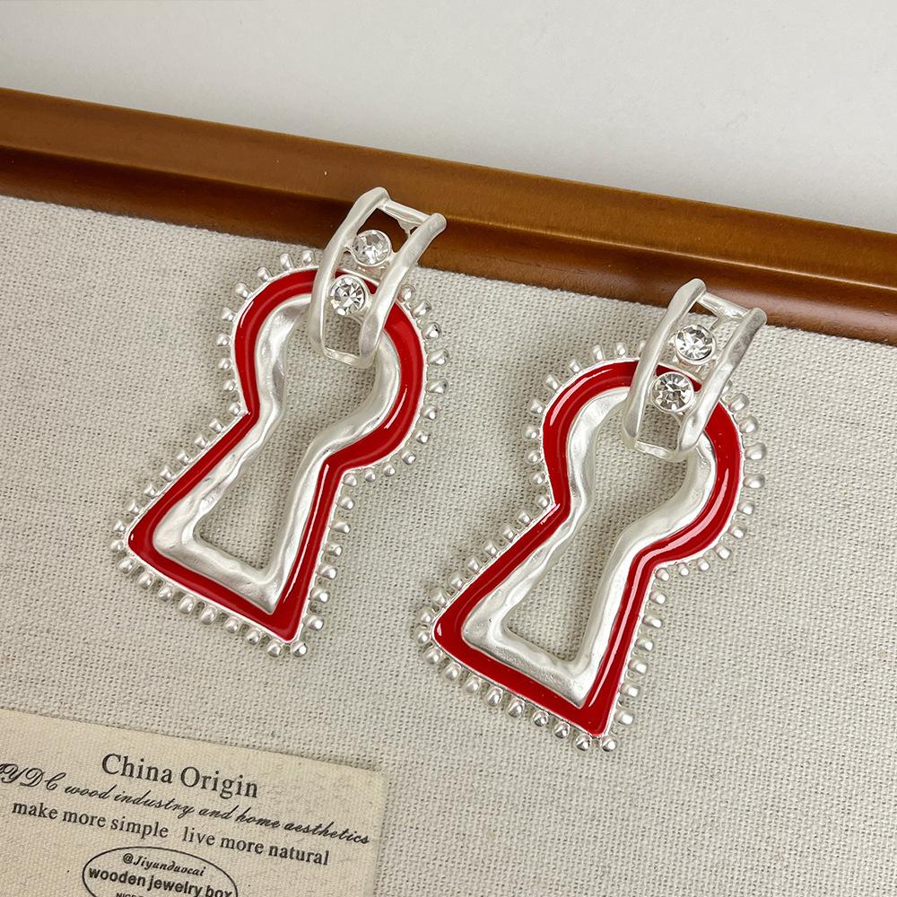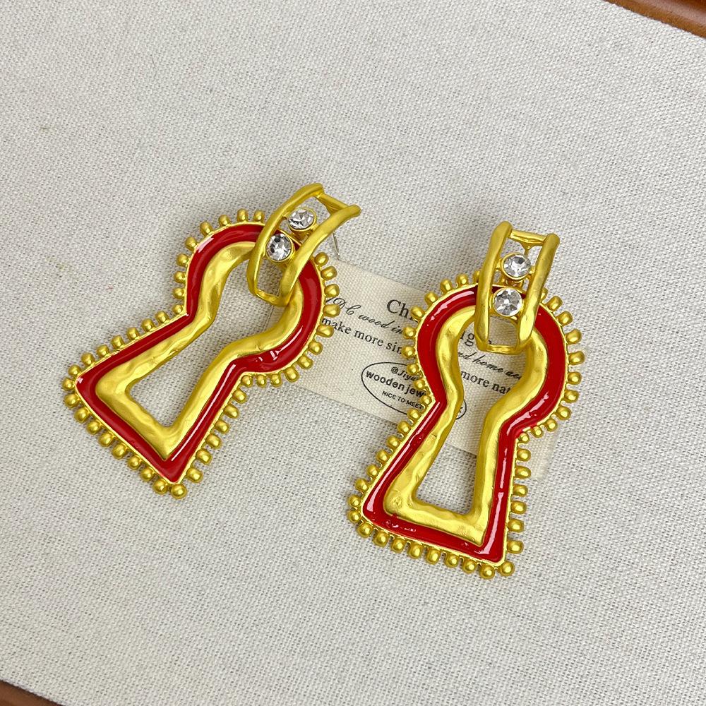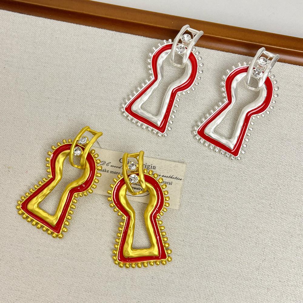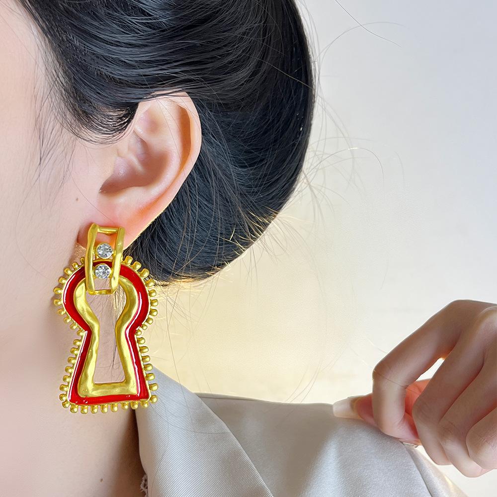 Brincos de pingente de buraco de fechadura de esmalte clássico europeu e americano, brincos retrô exagerados de indústria pesada para mulheres, brincos de personalidade única de nicho