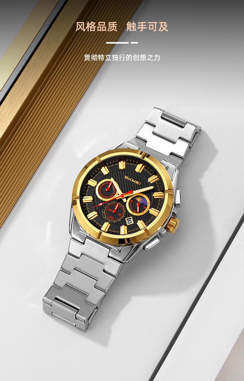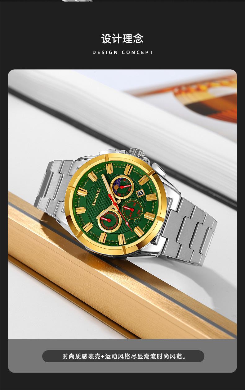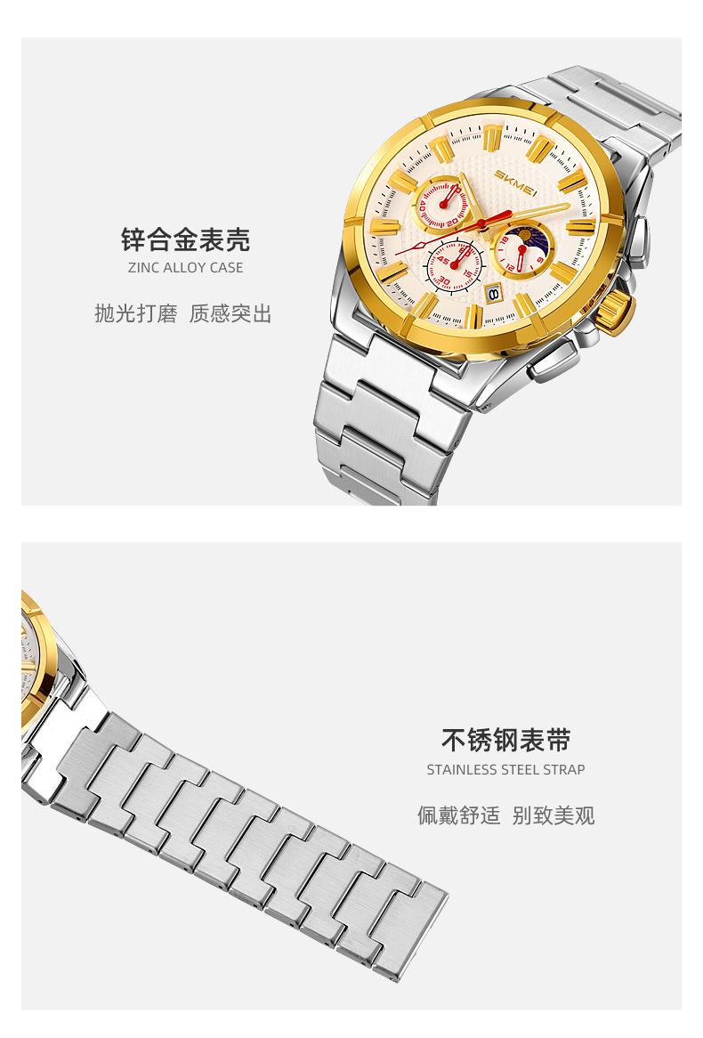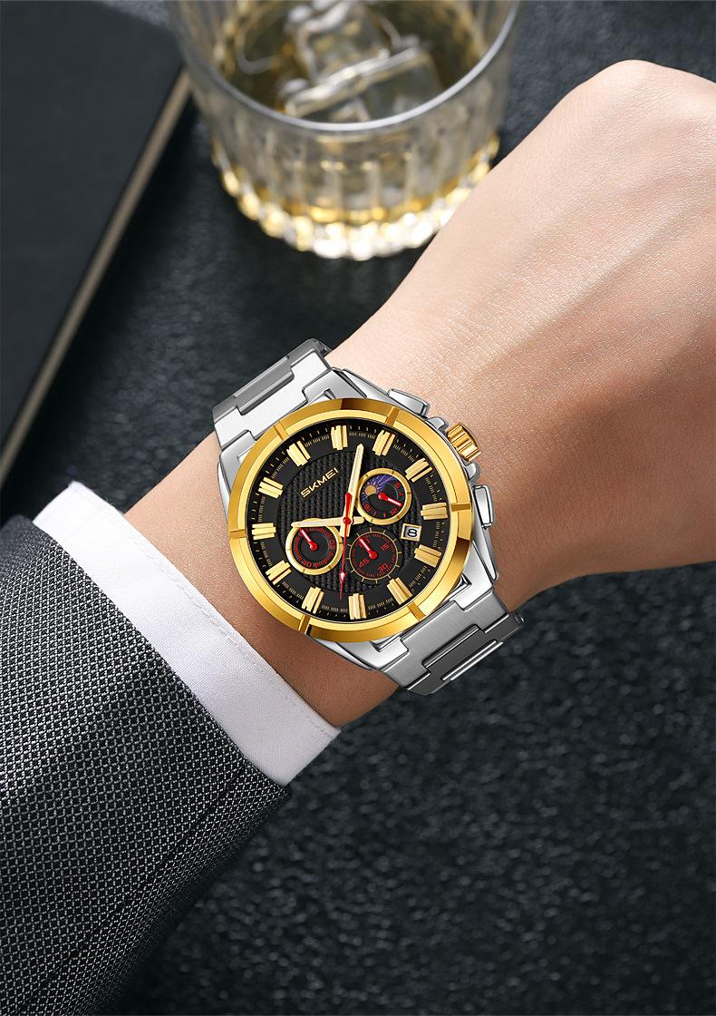 Relógio de beleza Time relógio de quartzo multifuncional relógio masculino de negócios relógio de três olhos relógio casual à prova d'água pequeno relógio de pulso de três pinos