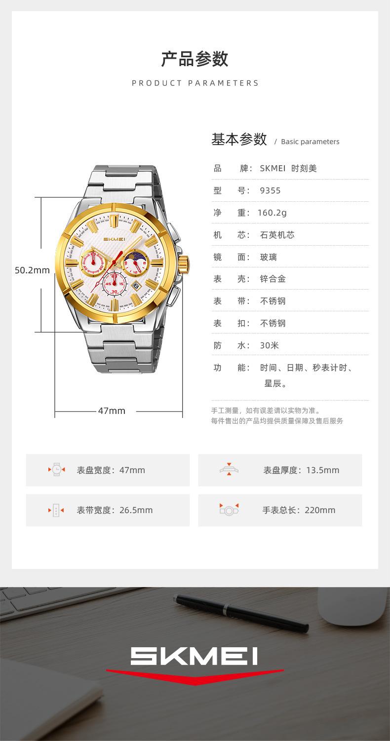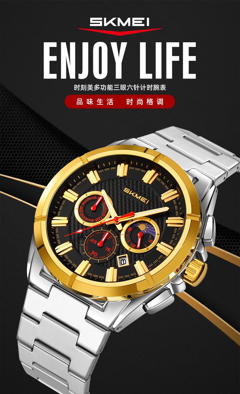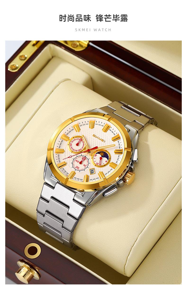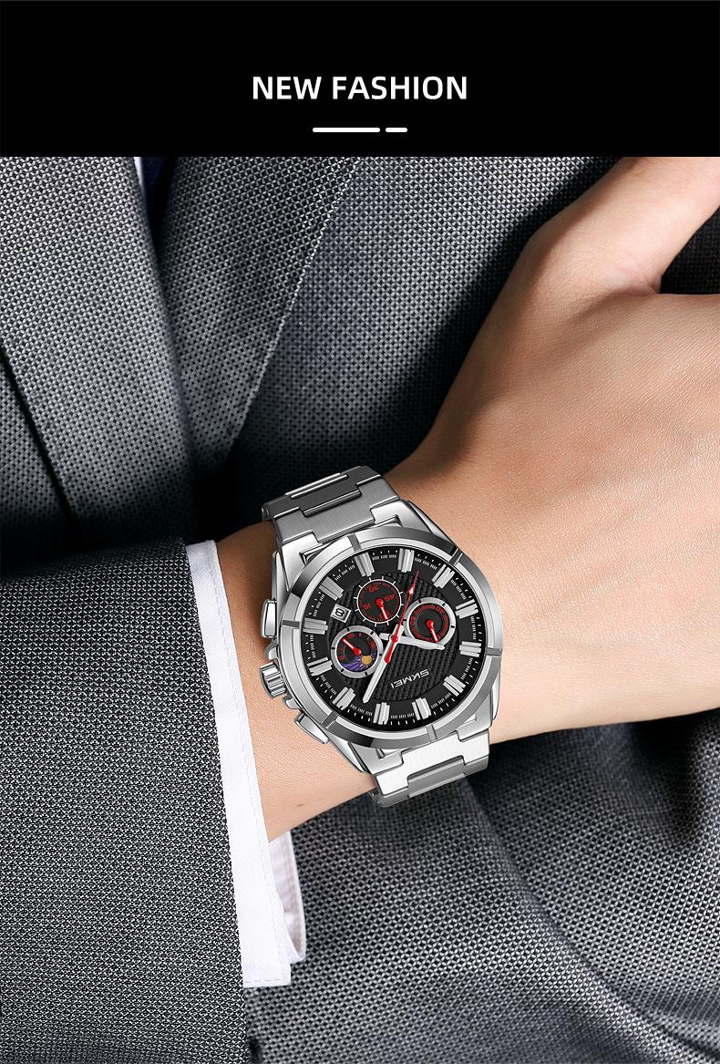 Relógio de beleza Time relógio de quartzo multifuncional relógio masculino de negócios relógio de três olhos relógio casual à prova d'água pequeno relógio de pulso de três pinos
