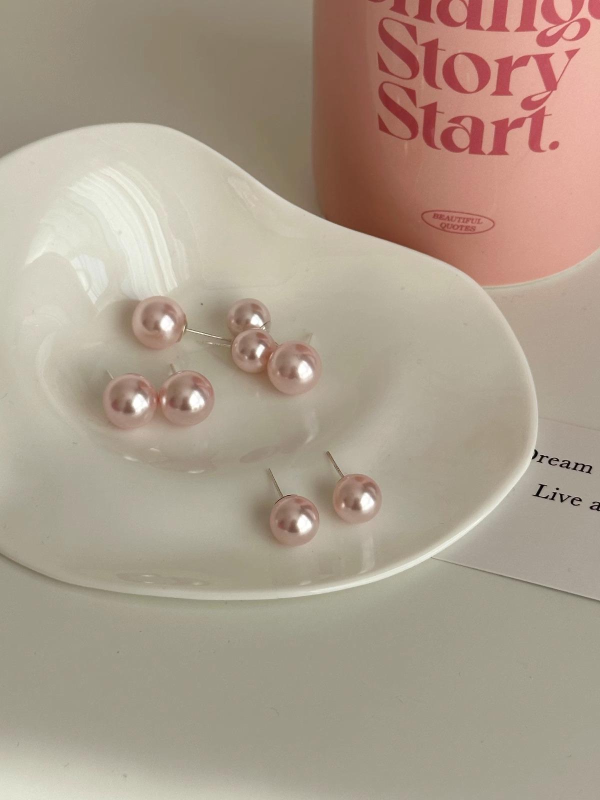 Compre Brincos de pérola rosa de prata esterlina S925, brincos redondos Shijia de alta qualidade, novos brincos temperamentais explosões 2023 no atacado no Joom.pro