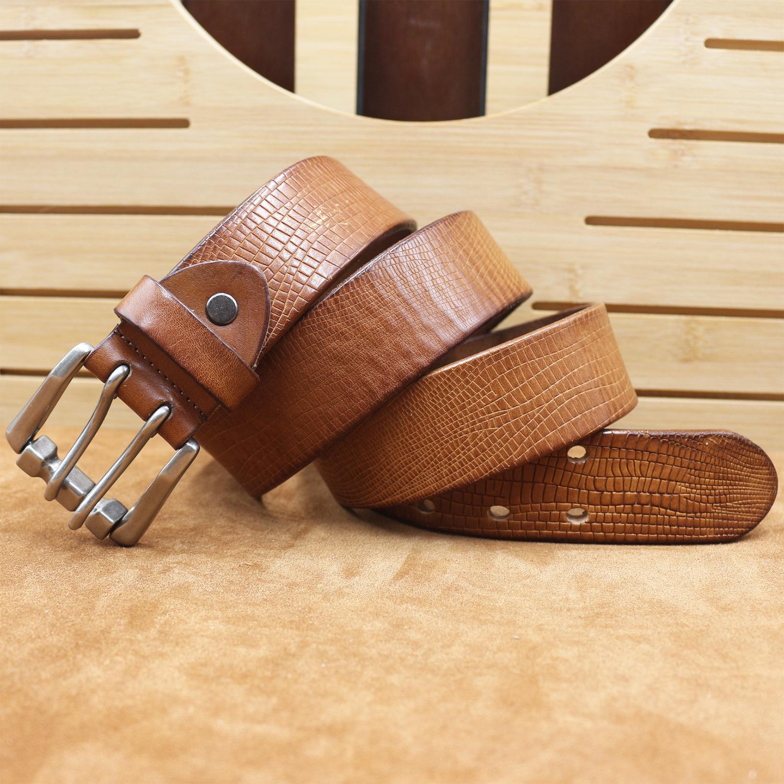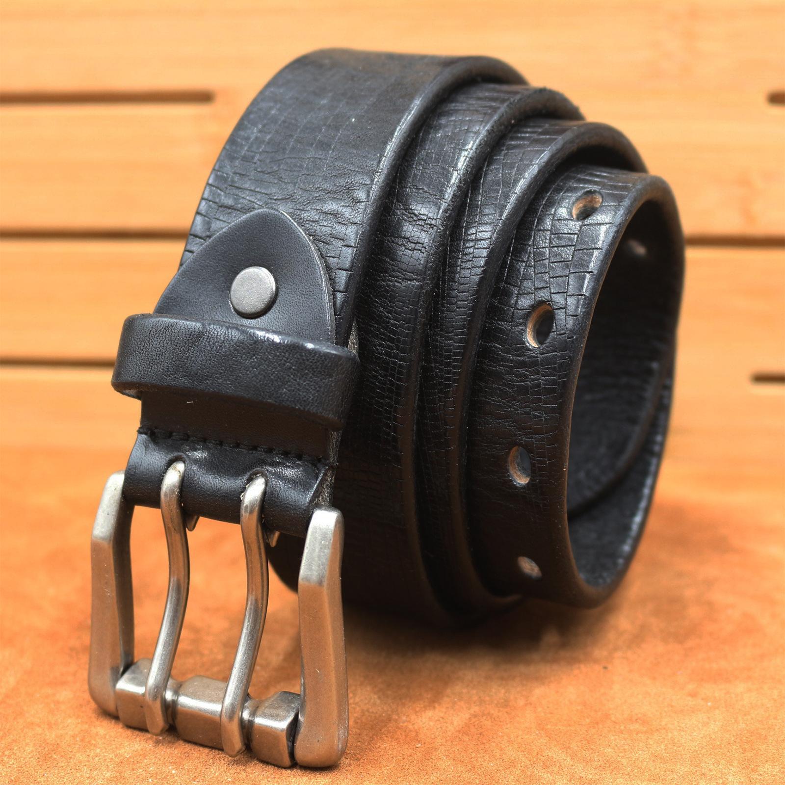 Cinto de couro de vaca vintage feito à mão primeira camada cinto de couro masculino casual calças Joker cinto cross-border fábrica atacado