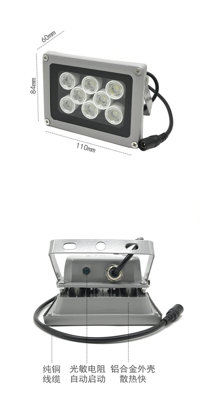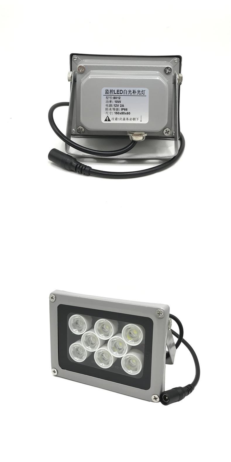 Pequena luz de preenchimento de visão noturna LED de monitoramento dc12 para exterior, luz branca de 10 W, luz de preenchimento de barreira à prova d'água
