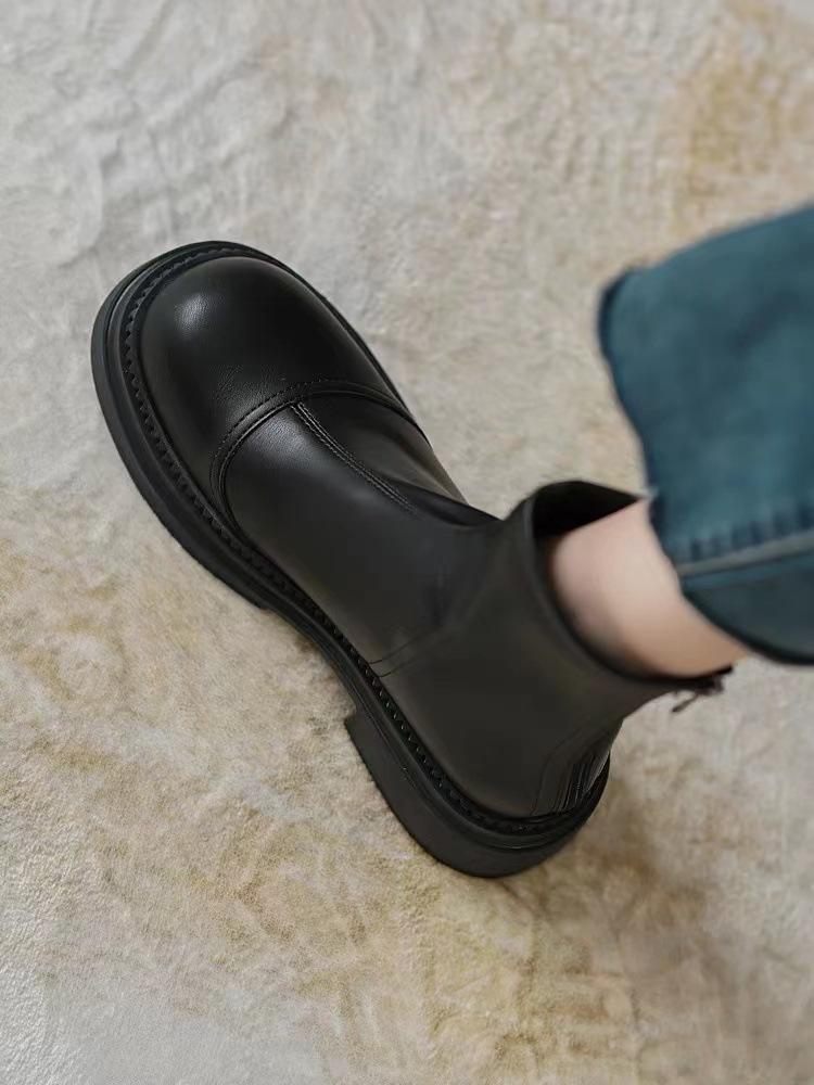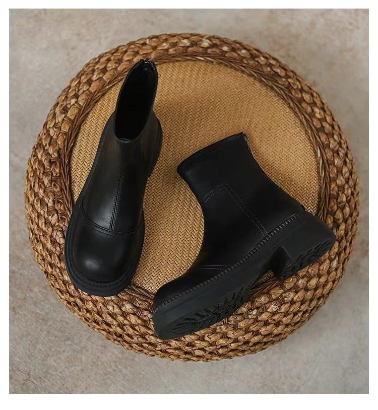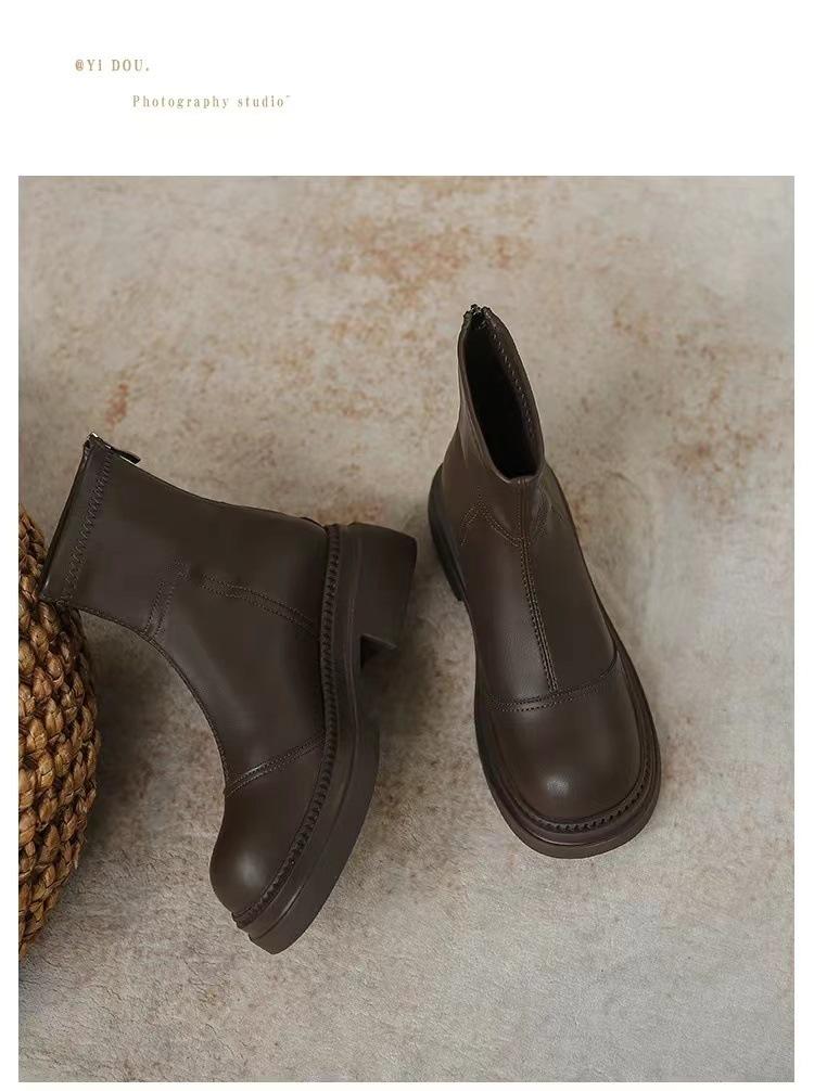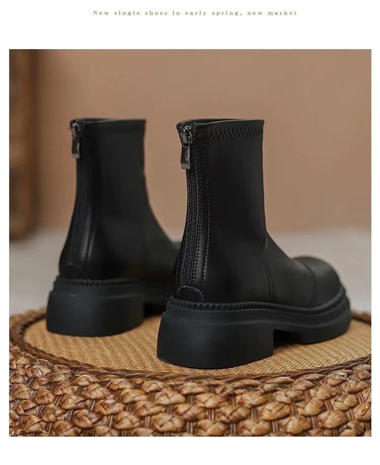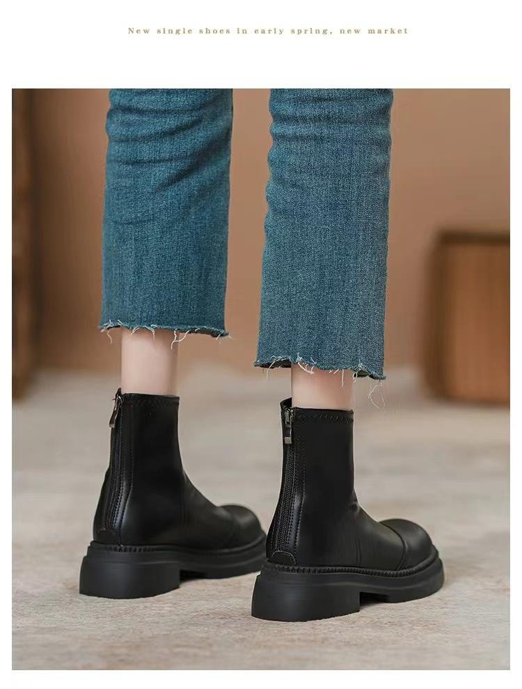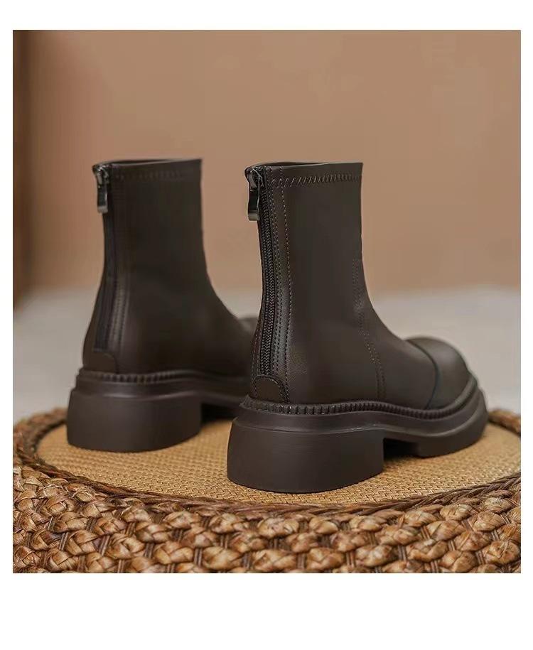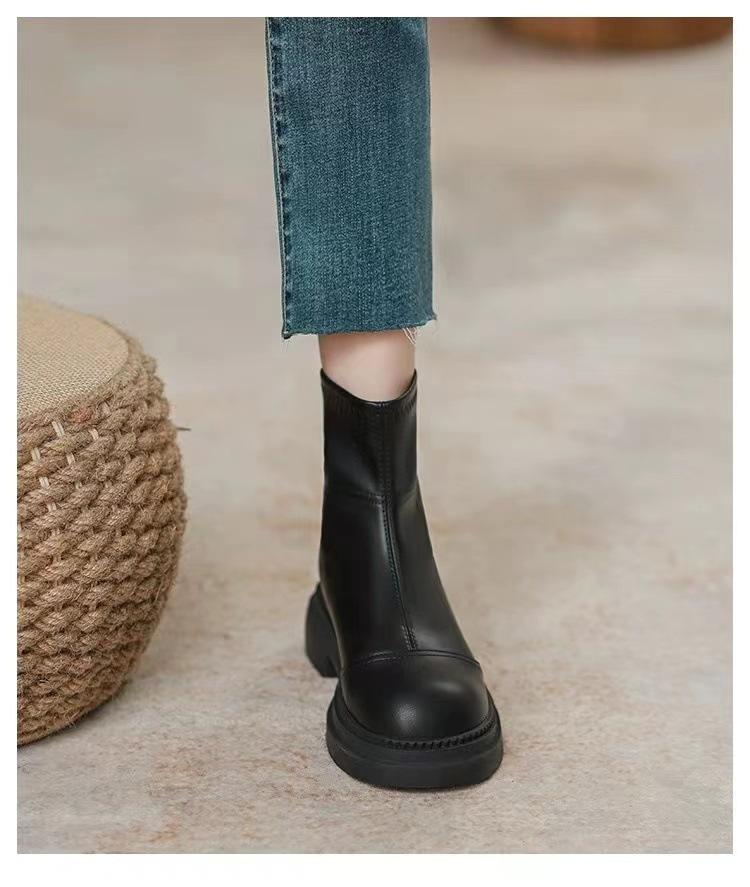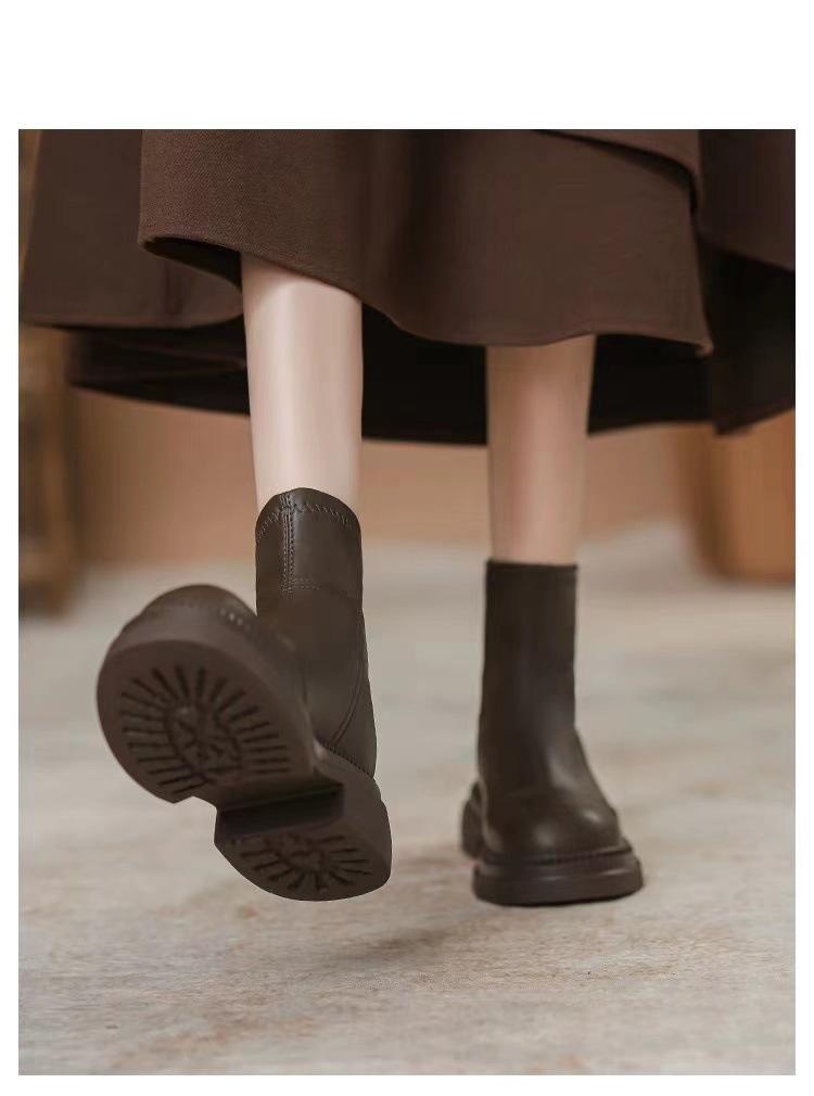 Botas finas elásticas femininas novas outono e inverno marrom pequenas botas curtas fundo grosso aumentado estilo britânico botas martin na moda