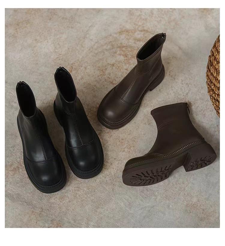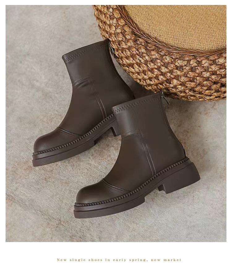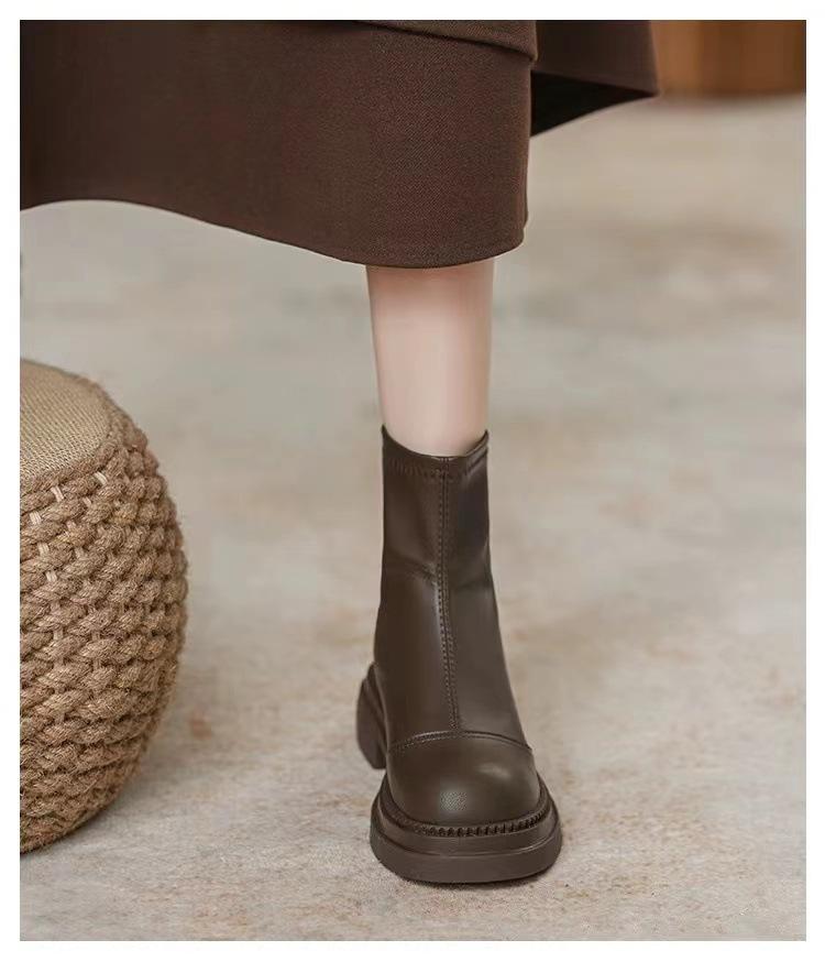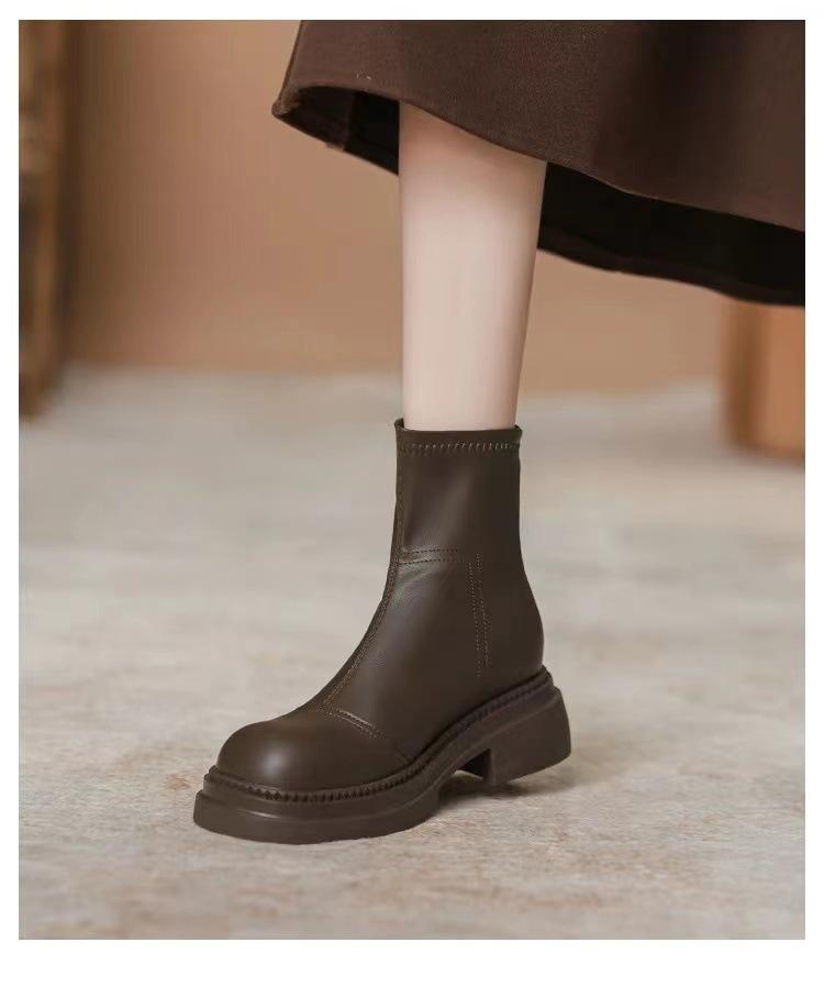 Compre Botas finas elásticas femininas novas outono e inverno marrom pequenas botas curtas fundo grosso aumentado estilo britânico botas martin na moda no atacado no Joom.pro