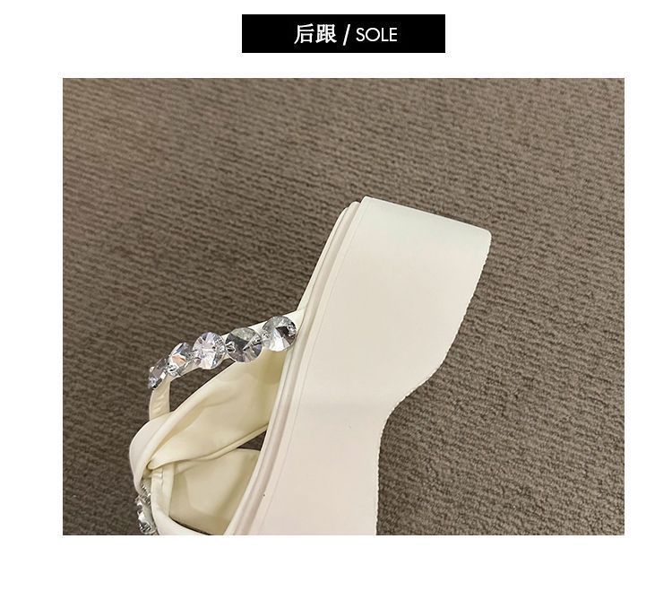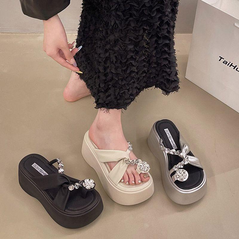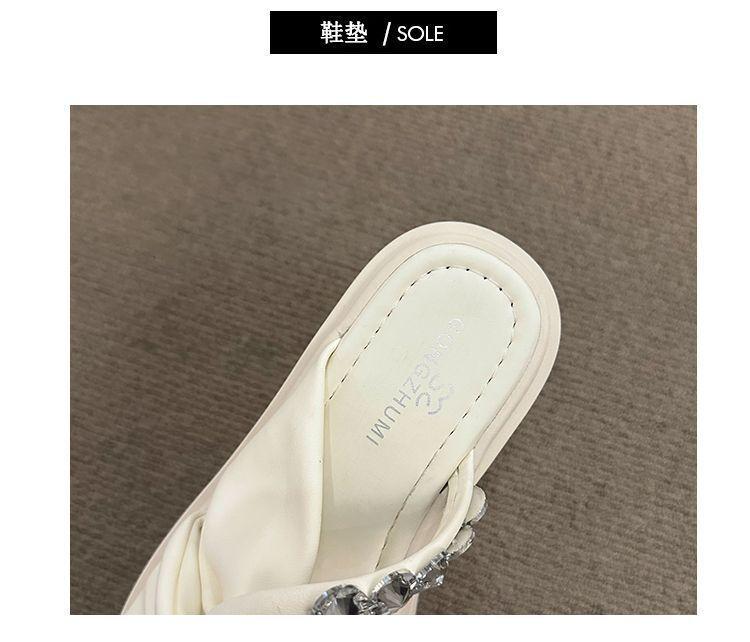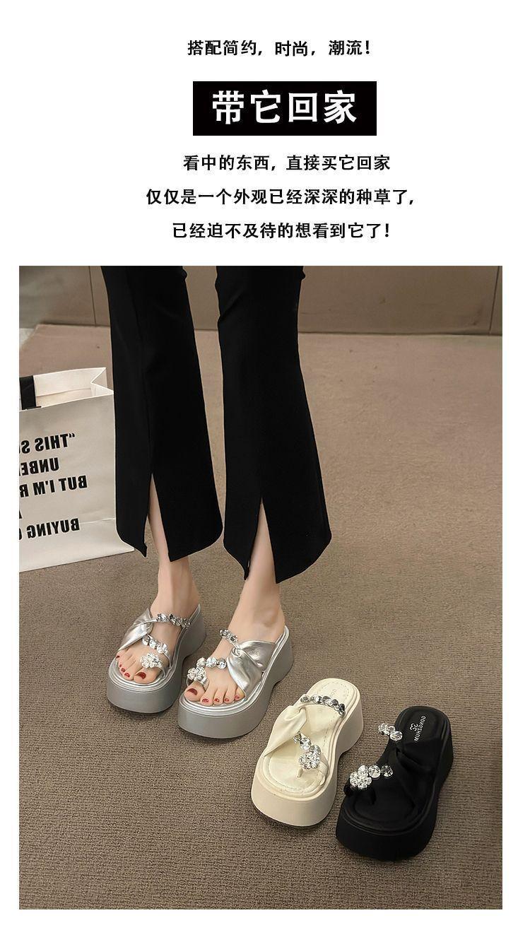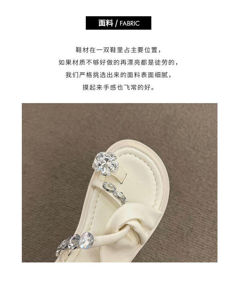 Estilo francês lindos chinelos femininos verão desgaste exterior moda 2024 novo estilo strass conjunto dedo do pé sandálias fundo grosso