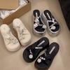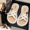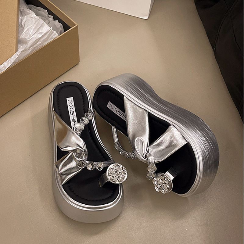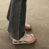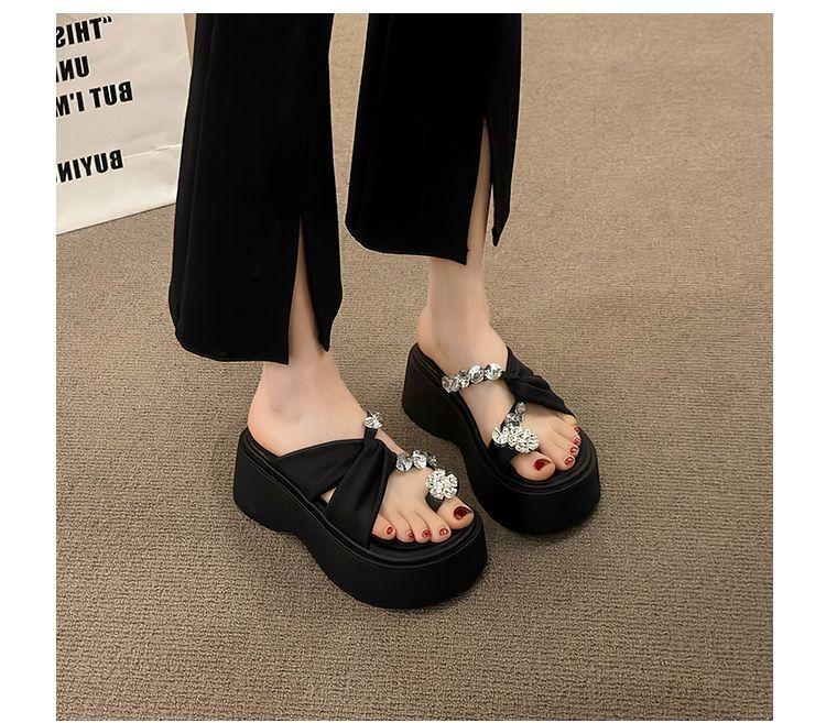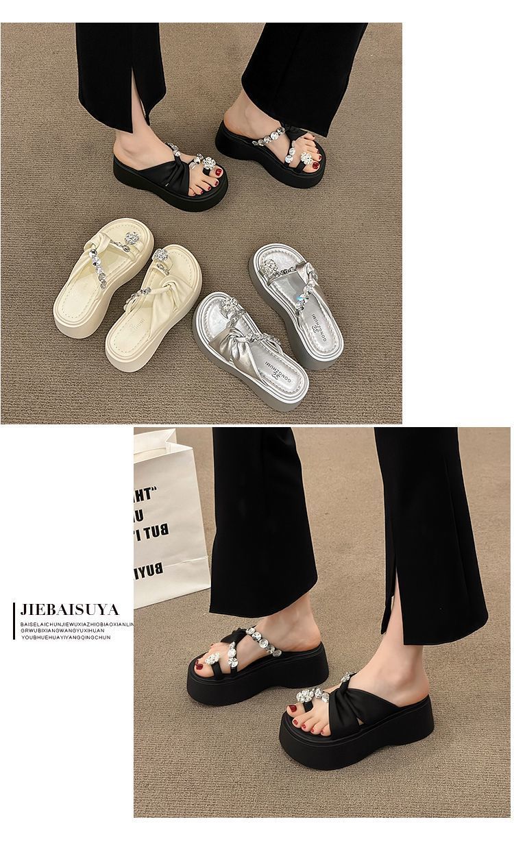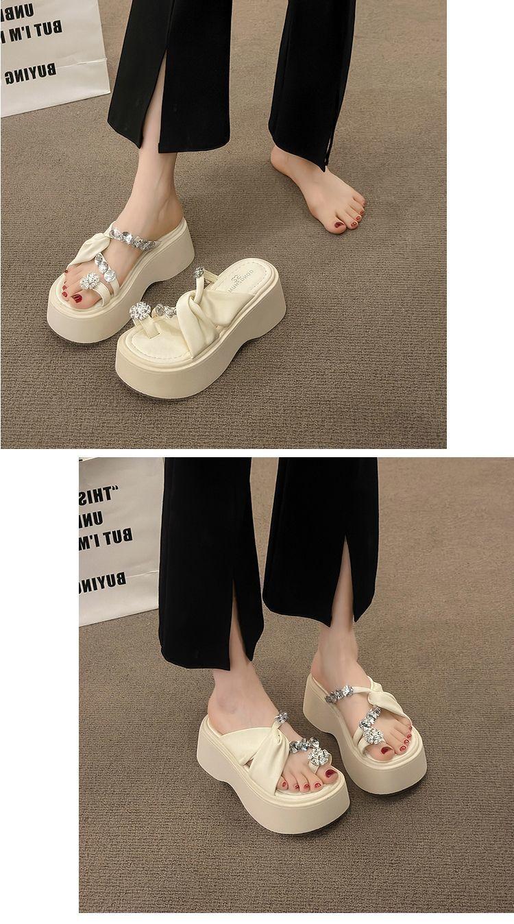 Estilo francês lindos chinelos femininos verão desgaste exterior moda 2024 novo estilo strass conjunto dedo do pé sandálias fundo grosso