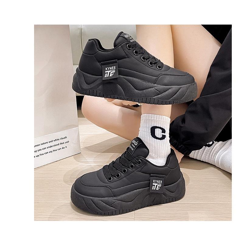 Compre Sapatos de Pão de Sola Grossa para Mulheres 2025 Primavera Novos Versátil Sapatos que Aumentam a Altura Tênis Esportivos Casuais Sapatos de Pai Pretos no atacado no Joom.pro