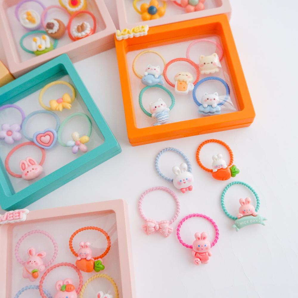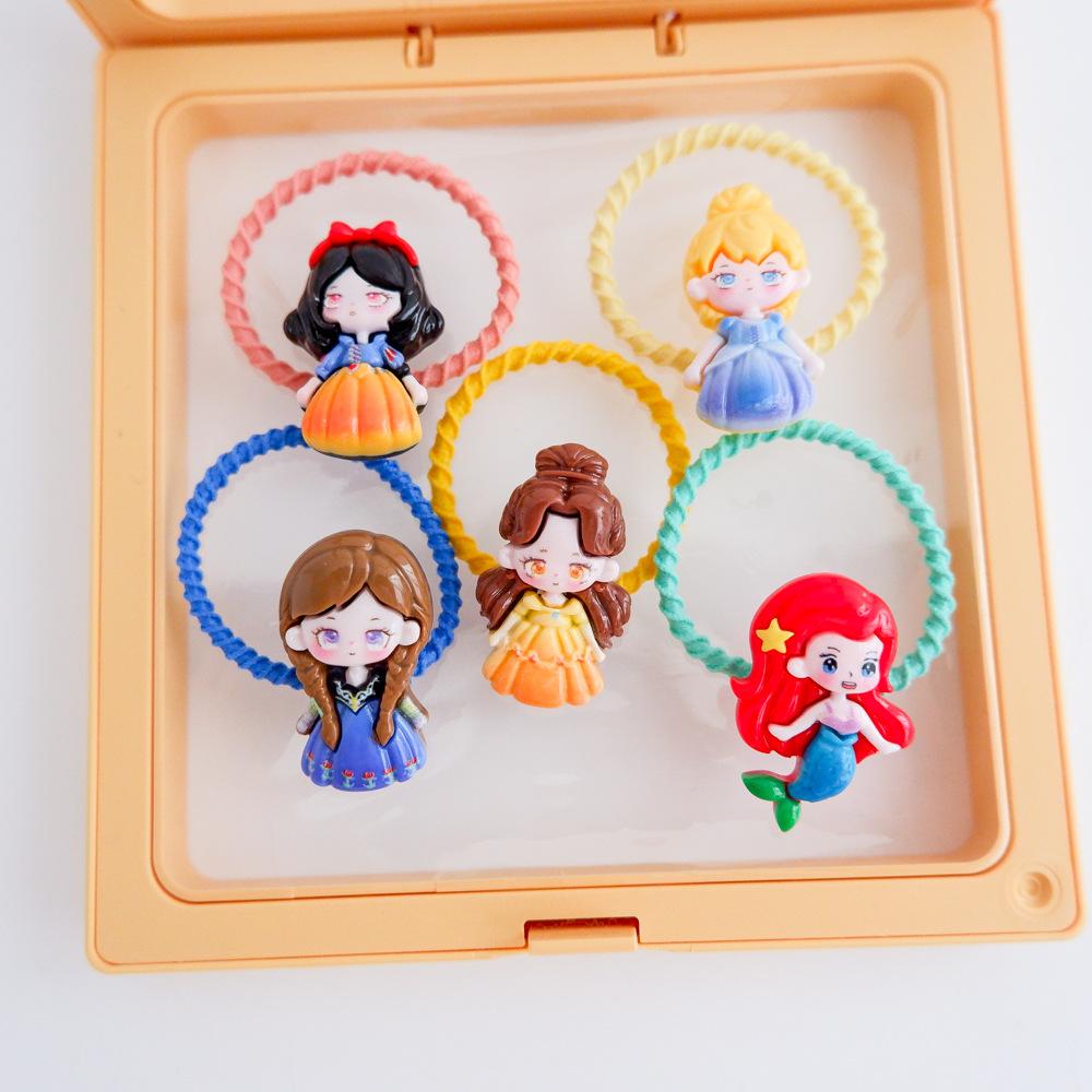 Personagem fofa pequena faixa de borracha menina bebê anel de cabelo princesa cabeça corda resina jóias desenho animado acessórios para cabelo caixa de presente conjunto