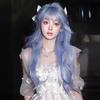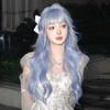 Nova peruca feminina gradiente cinza azul cabelo longo onda de água natural fofo grande onda longo cabelo cacheado cobertura de cabeça cheia