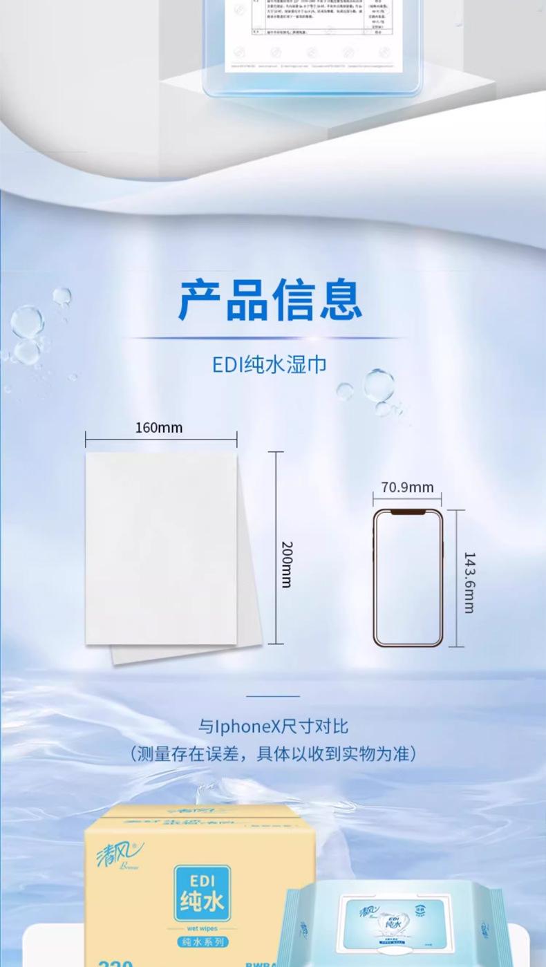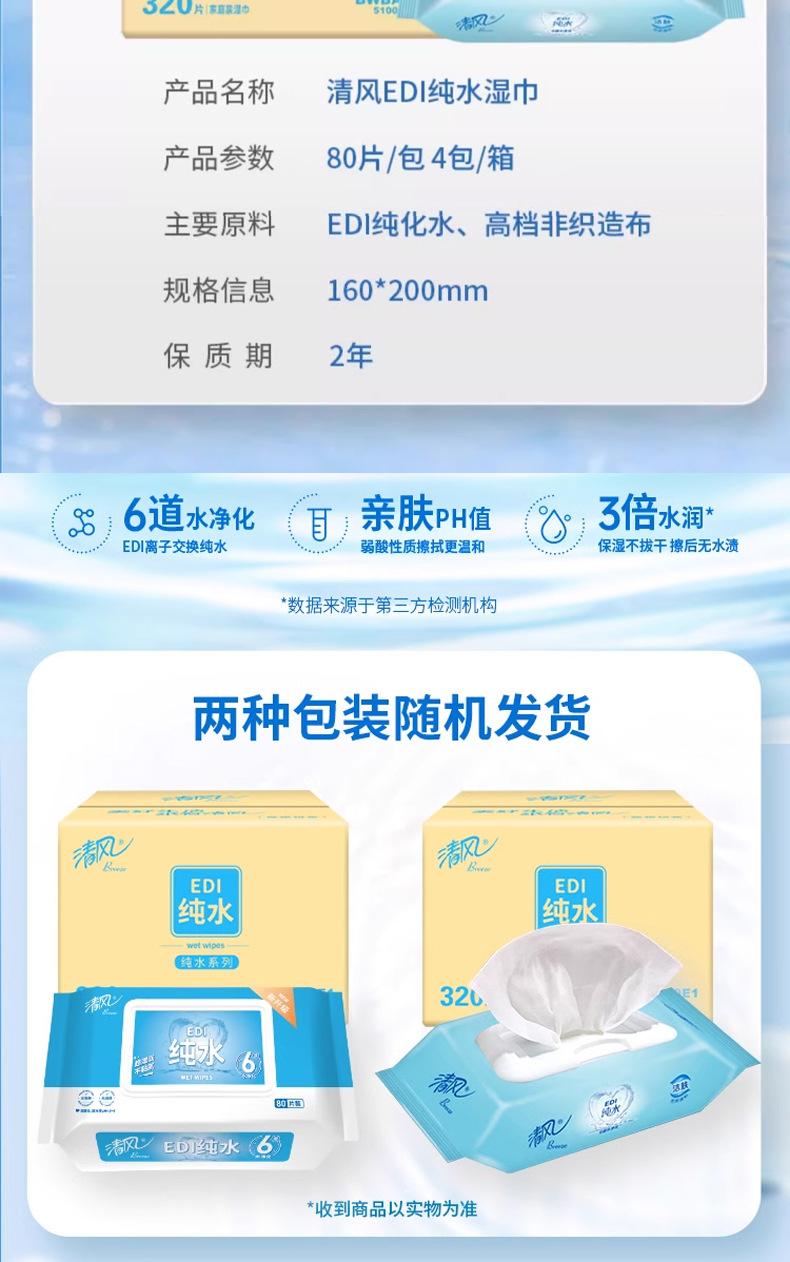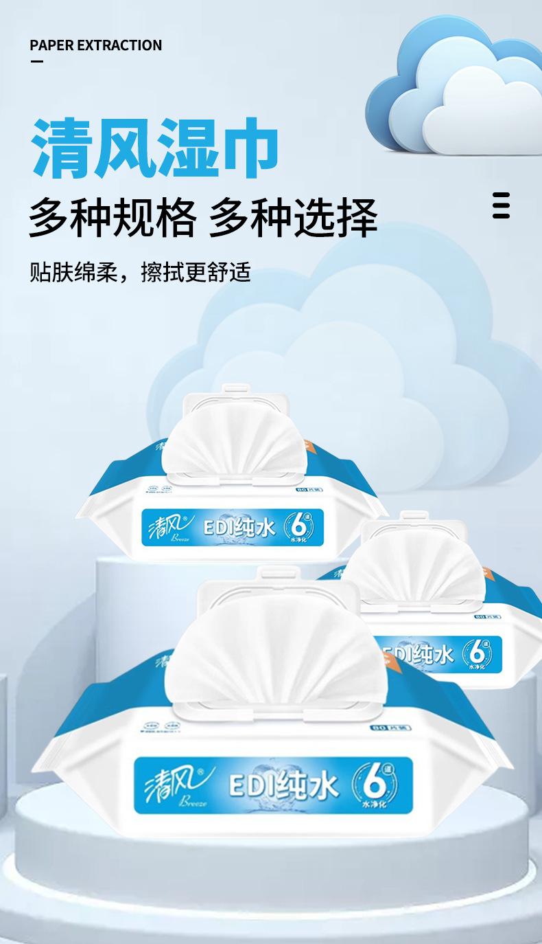 Qingfeng Wet Tissue Paper EDI Pure Water Series Pacote Familiar Lenços Umedecidos Espessados 80 Peças/Pacote de Lenços Umedecidos Acessíveis Atacado