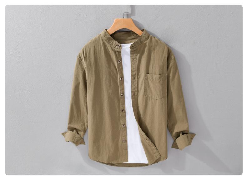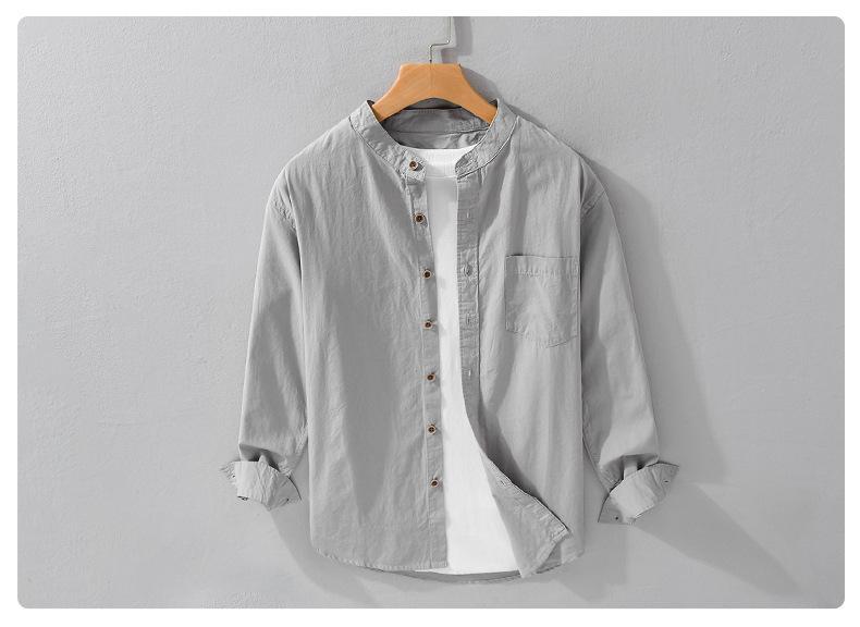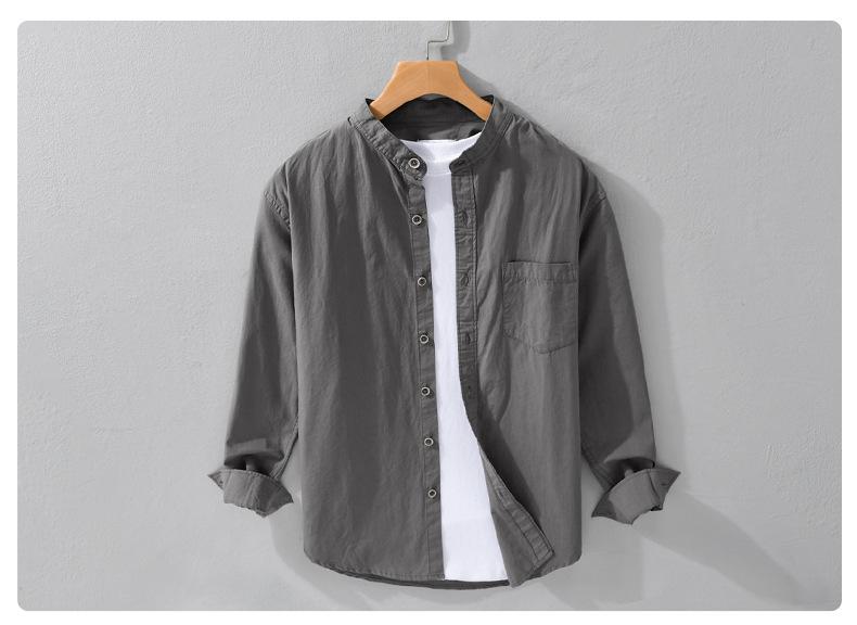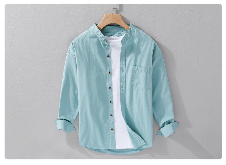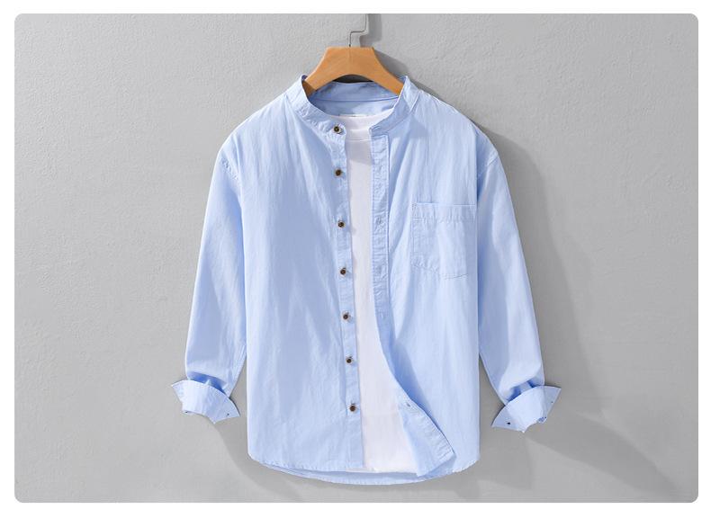 Compre Camisa masculina simples de manga comprida para primavera e outono, branca, casual, com fundo solto, popular, fácil de ajustar, camisa masculina 9153 no atacado no Joom.pro