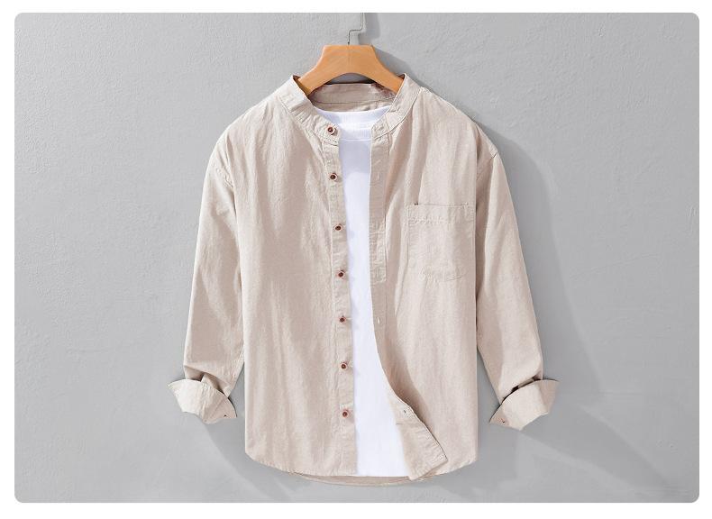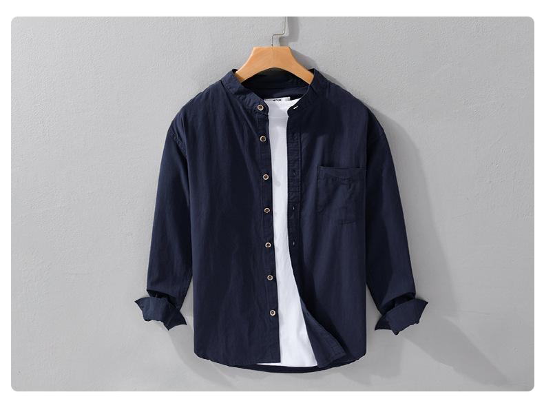 Camisa masculina simples de manga comprida para primavera e outono, branca, casual, com fundo solto, popular, fácil de ajustar, camisa masculina 9153