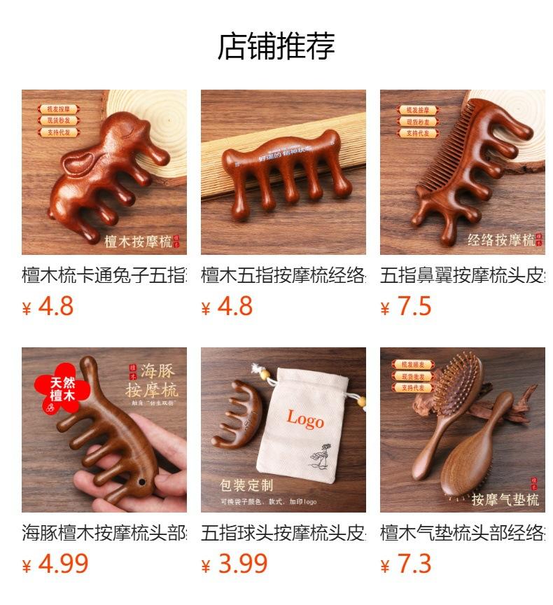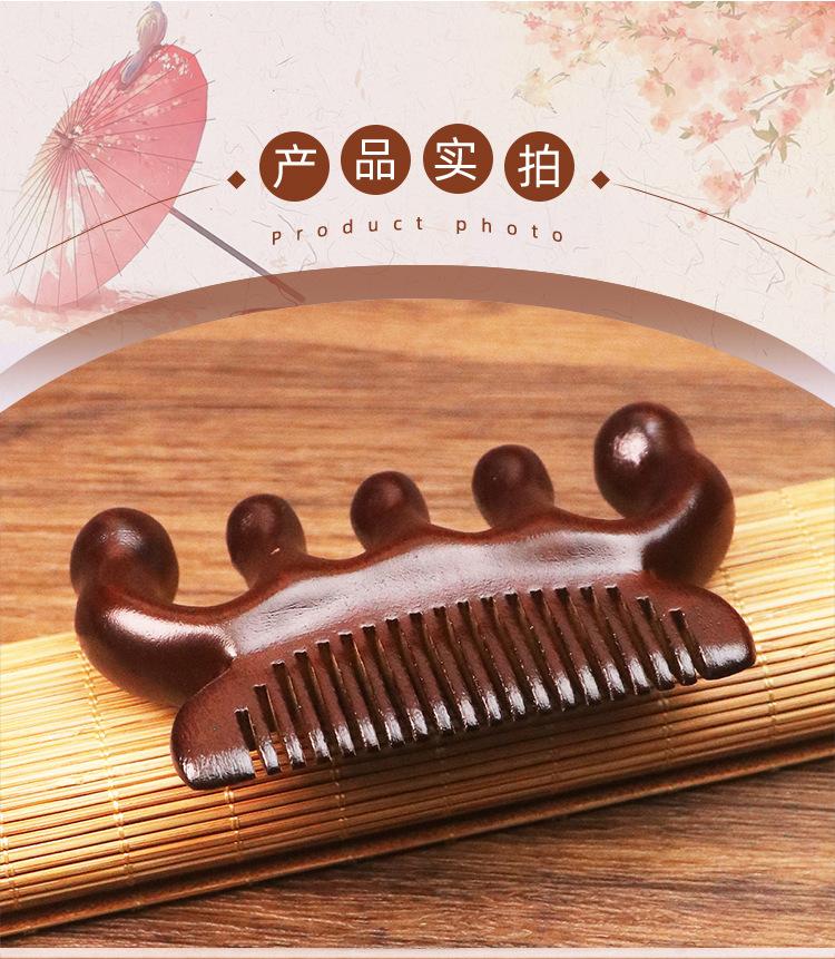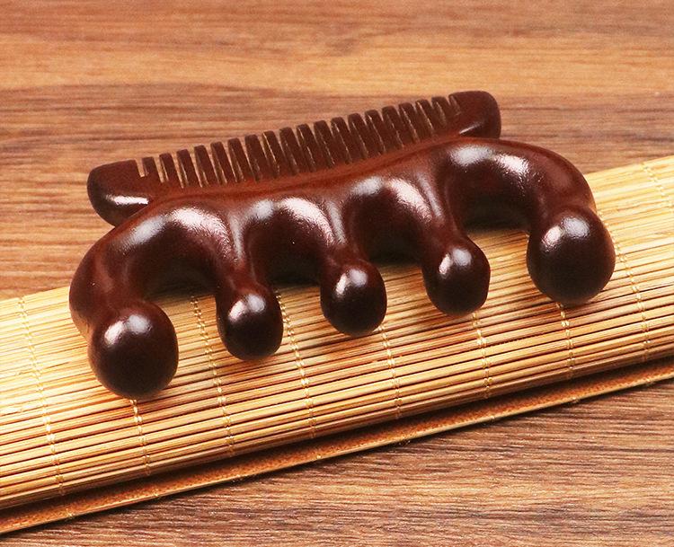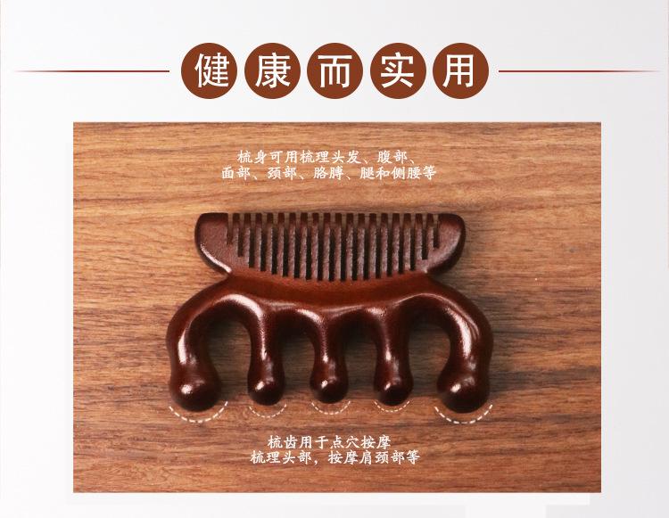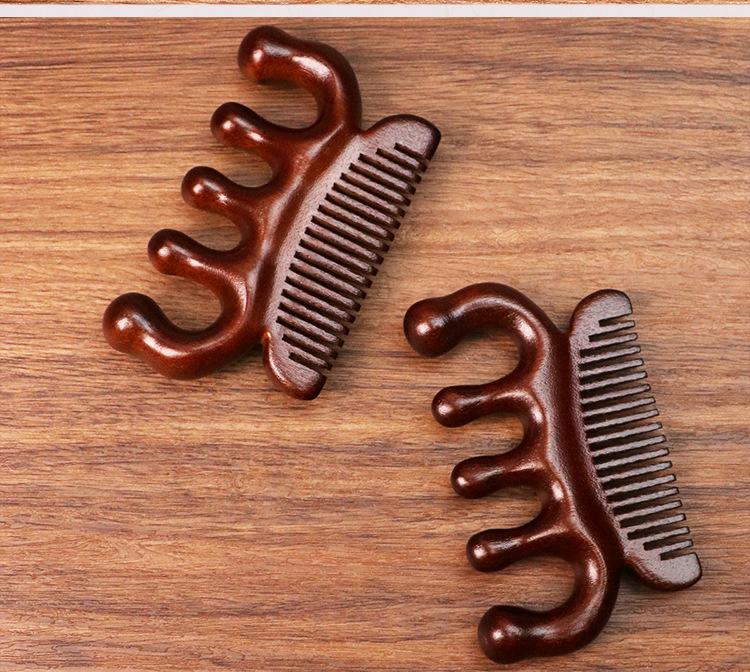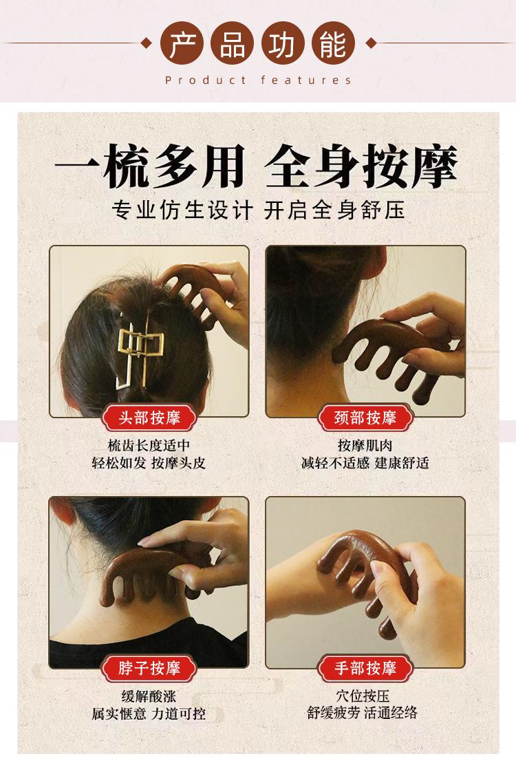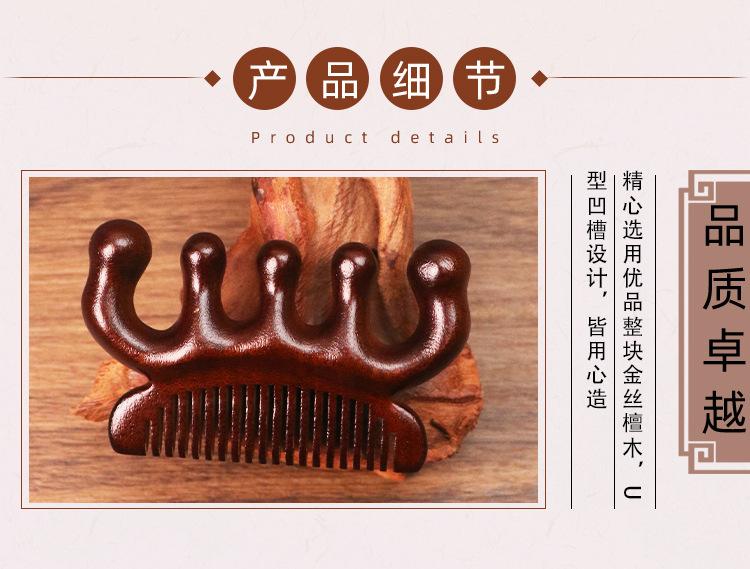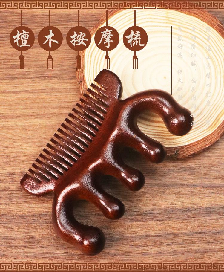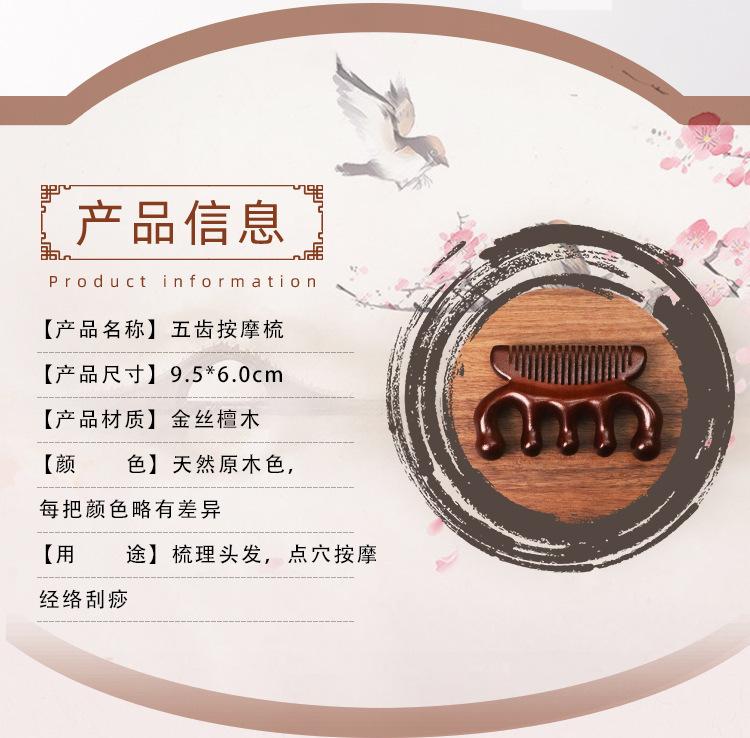 Pente de massagem de sândalo de seda dourada pente meridiano pente de cinco dedos sândalo ombro pescoço bola cabeça pente de massagem multifuncional pente de dois propósitos