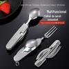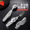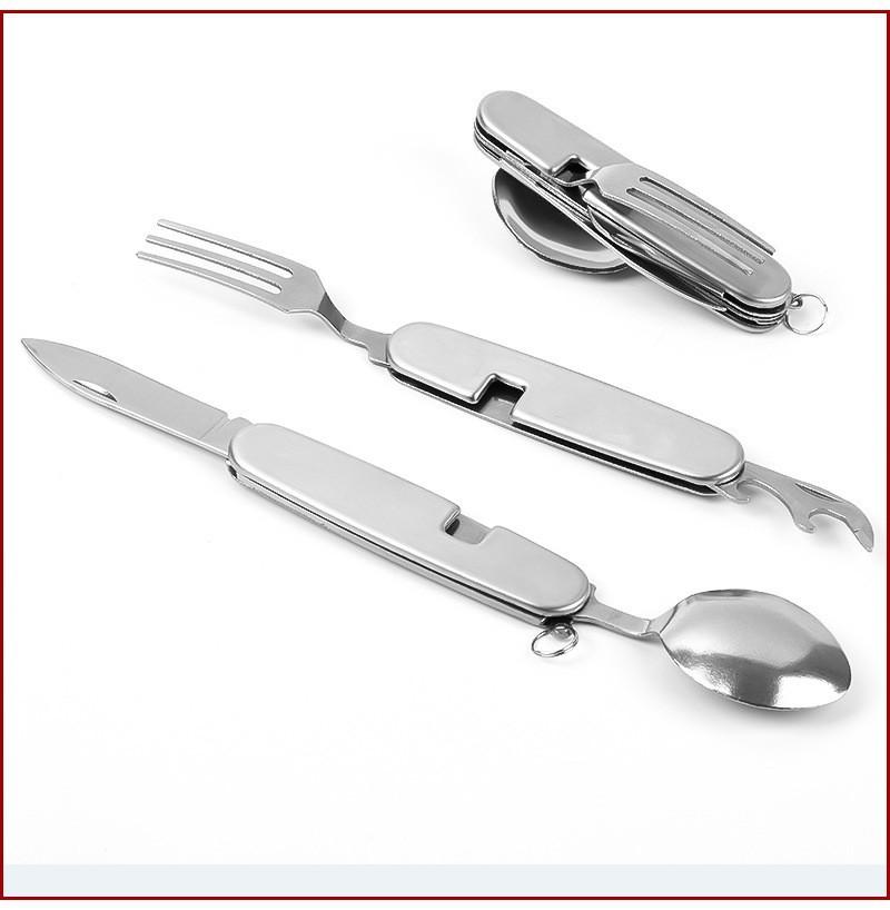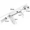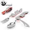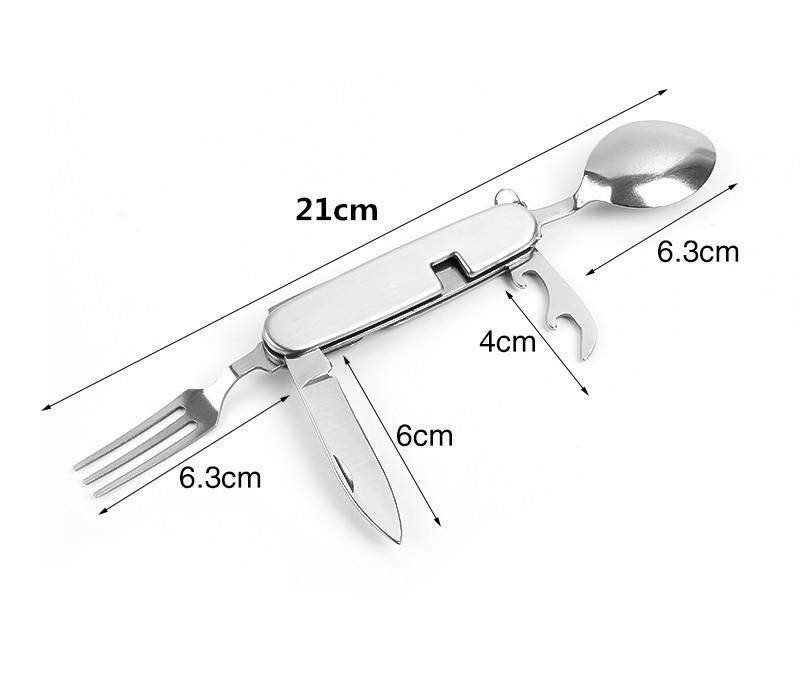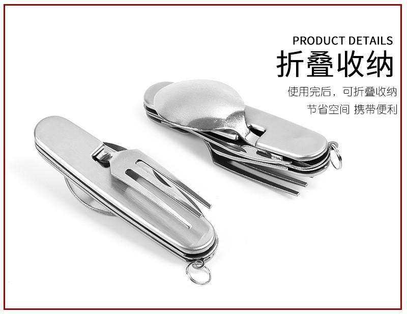 Fábrica de local externo de aço inoxidável faca dobrável, garfo e colher pequena quatro-abertura multifuncional acampamento utensílios de mesa ferramenta de piquenique