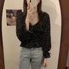 Camisa de colarinho azul feminina design senso nicho camisa de chiffon primavera e outono nova moda francesa elegante camisa top