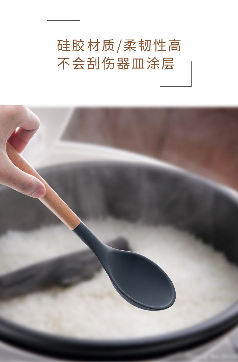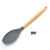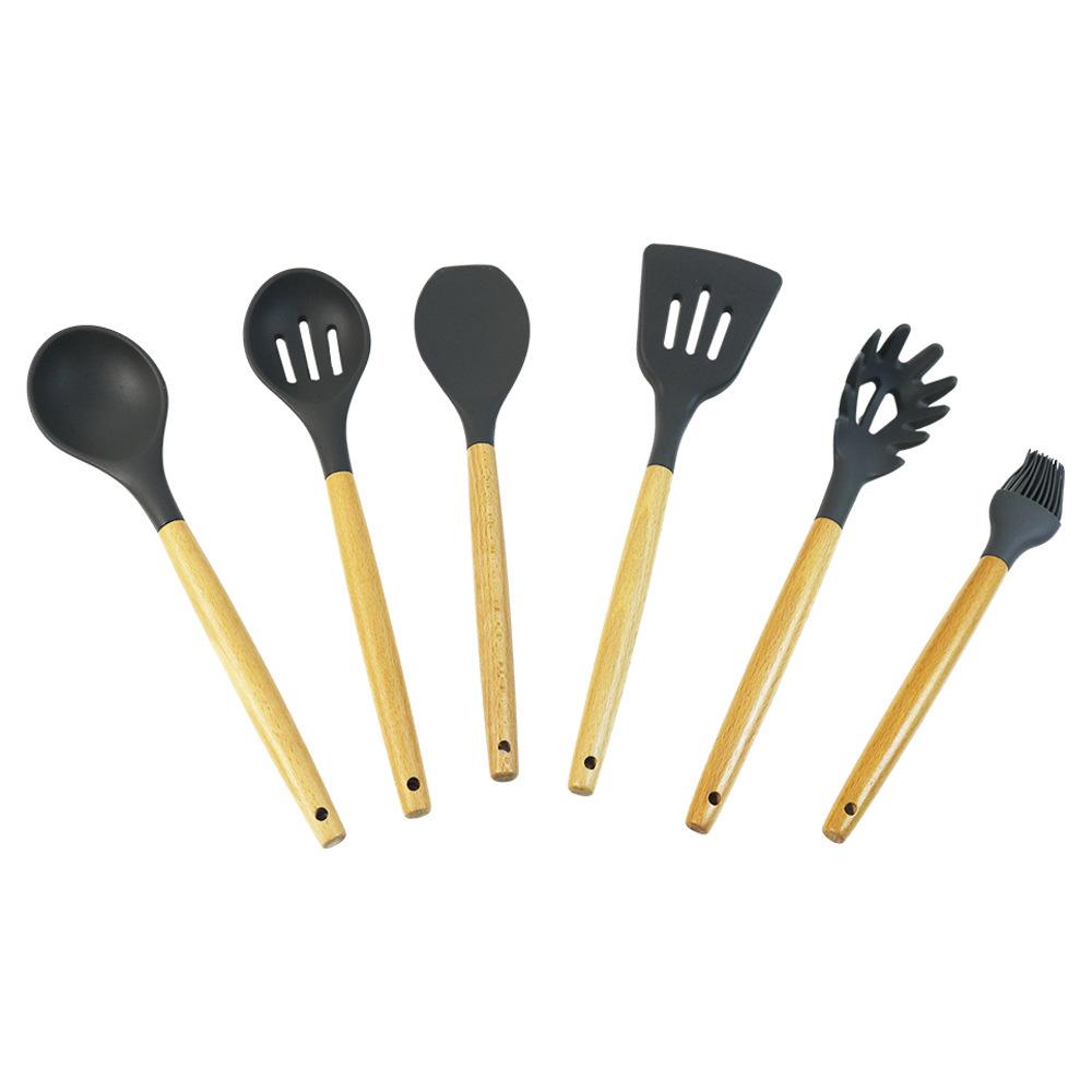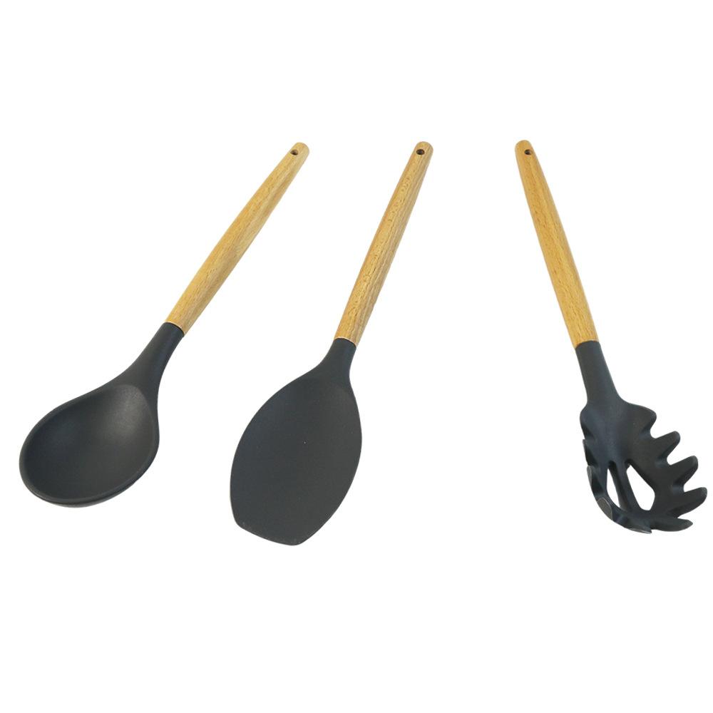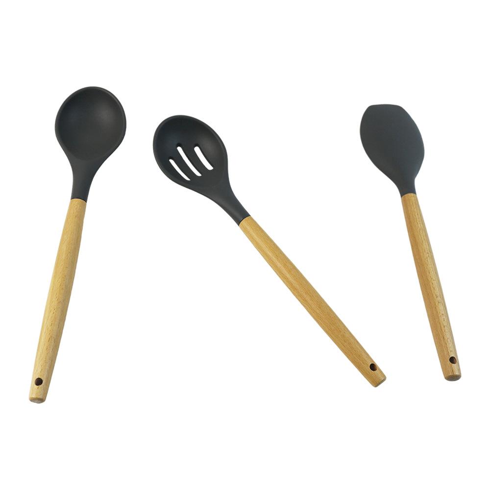 Utensílios de cozinha de silicone com cabo de madeira, 8 peças, adequado para alimentos, alta temperatura, resistente, silicone, pá, escorredor de cozinha, panela antiaderente, colher de sopa, pá
