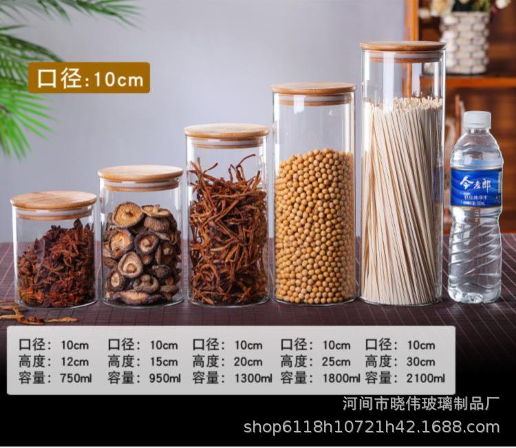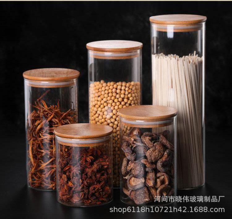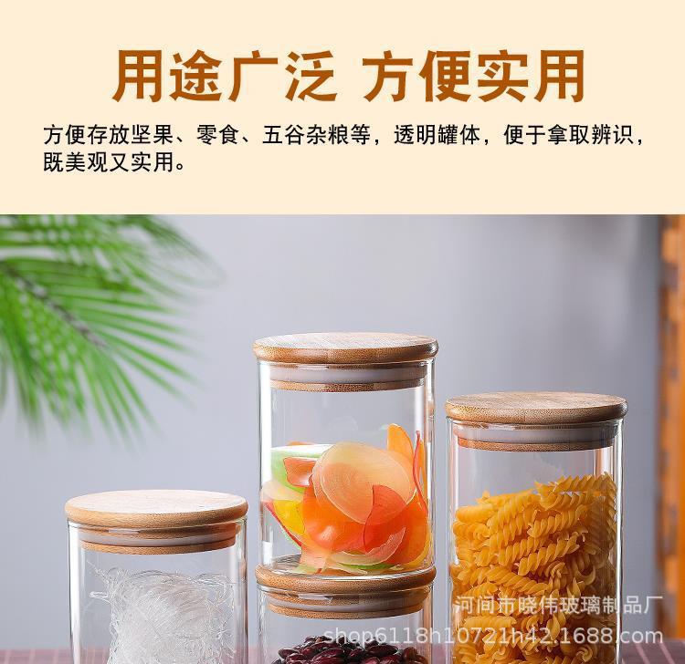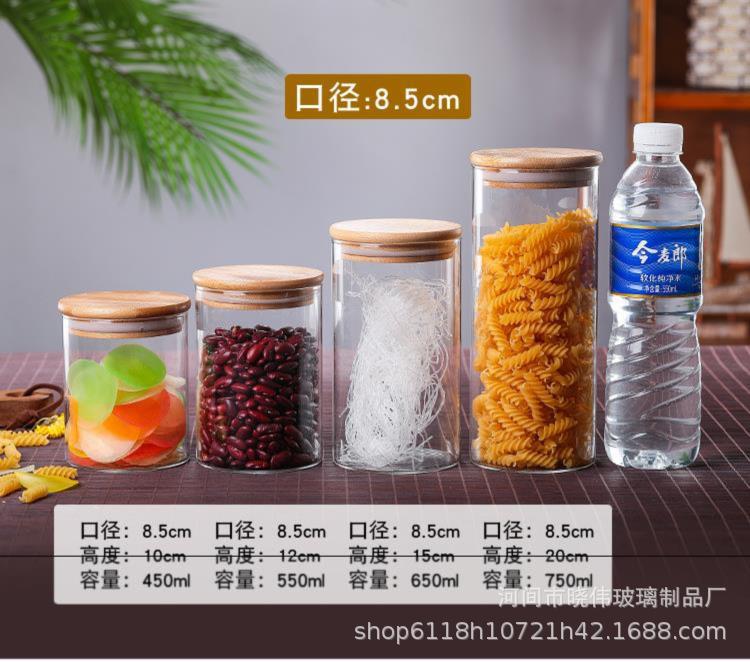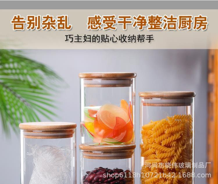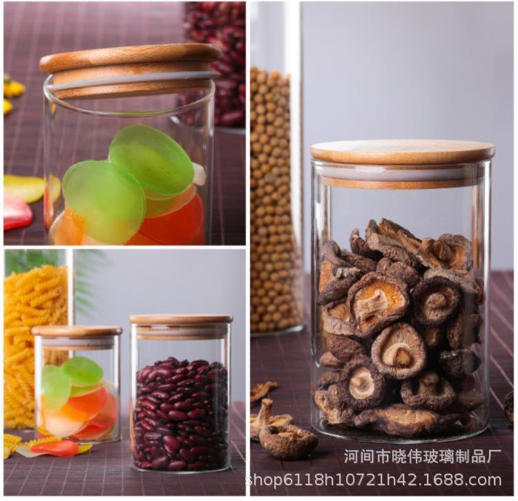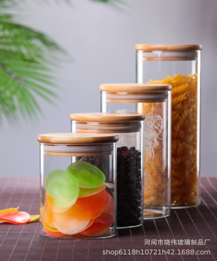 Latas de chá de vidro transparente Tampa de bambu Reta selada Armazenamento Jar Vidro de alto teor de borosilicato Frutas secas Doces Grãos Armazenamento Jar