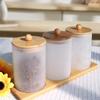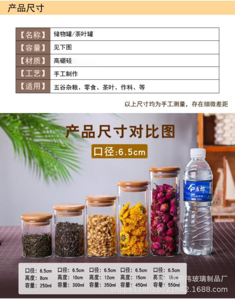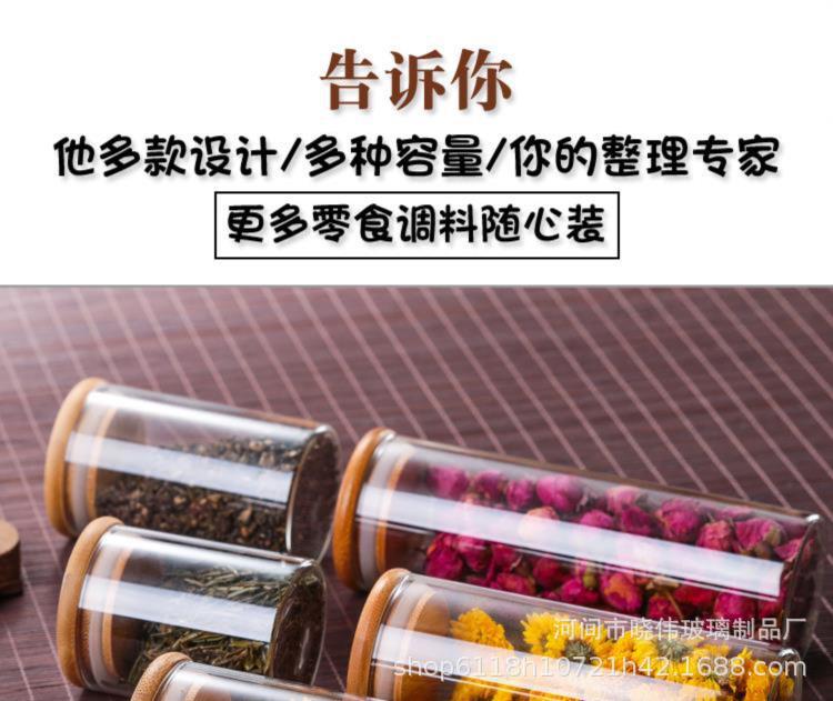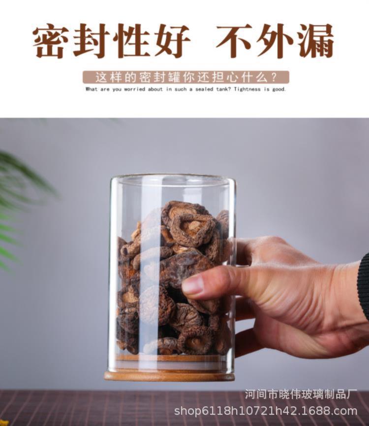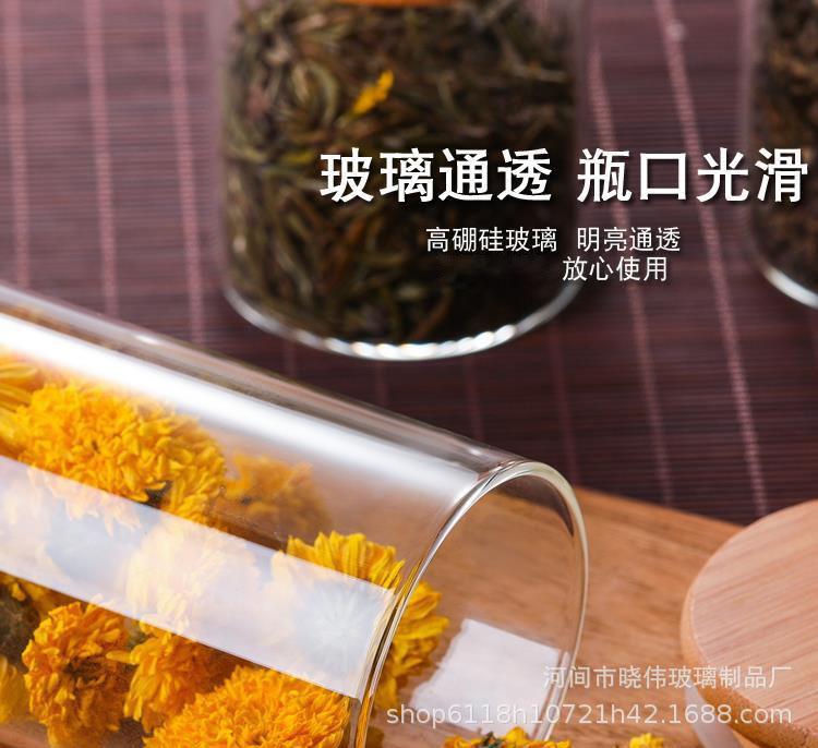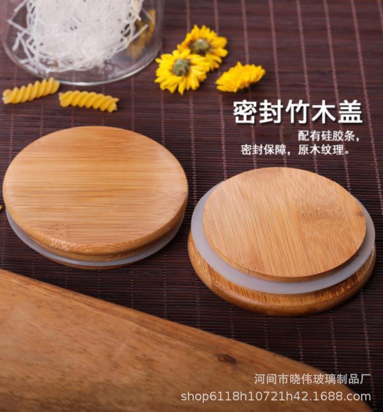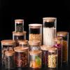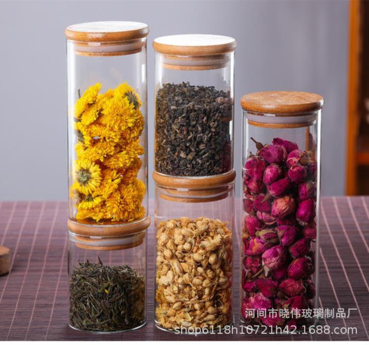 Latas de chá de vidro transparente Tampa de bambu Reta selada Armazenamento Jar Vidro de alto teor de borosilicato Frutas secas Doces Grãos Armazenamento Jar