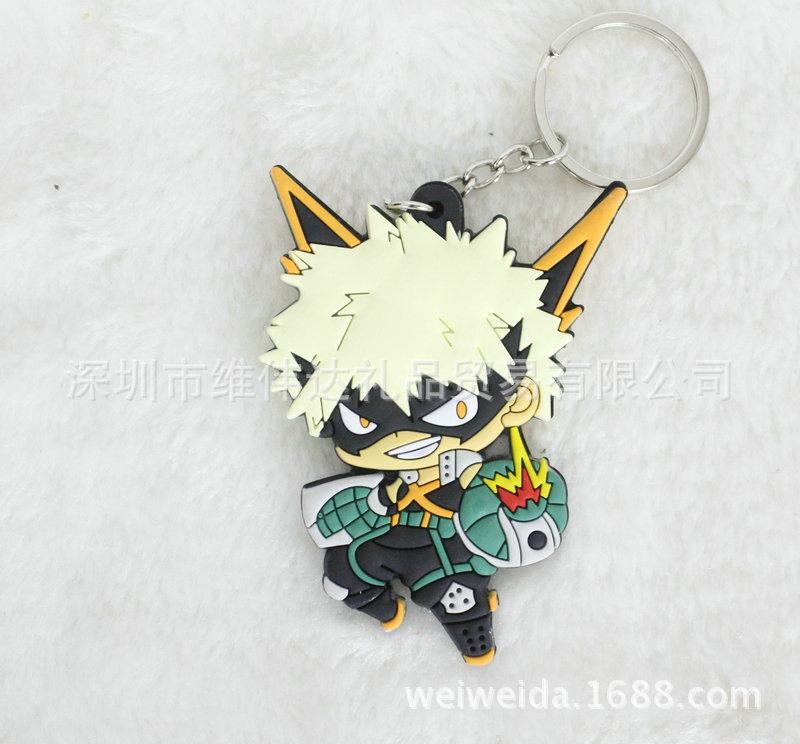 Nome do Produto: : Chaveiro de silicone dupla face My Hero Academia, decoração de chaveiro, corrente de desenho animado My Hero Academia