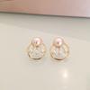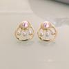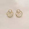 S925 Agulha de Prata Super Fada Geométrica Brincos Redondos Brincos de Diamante Oco Brincos de Pérola Coreanos Simples e Elegantes