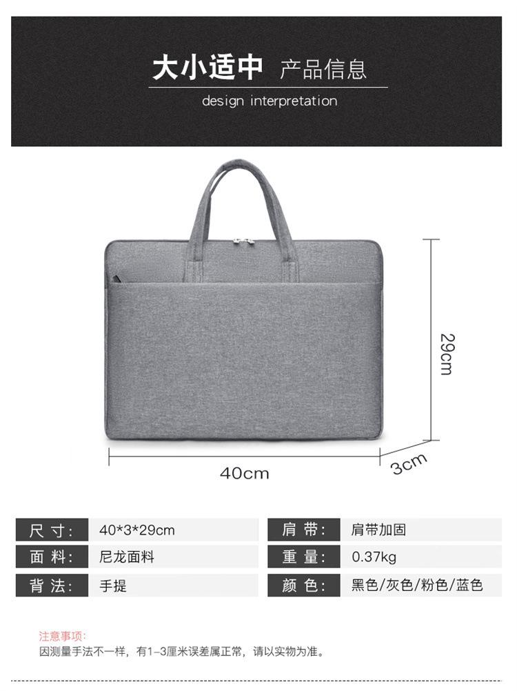 Bolsa fina para laptop portátil de 13,3 polegadas, 14 polegadas, 15,6 polegadas, pasta de tecido Oxford, bolsa de armazenamento para iPad