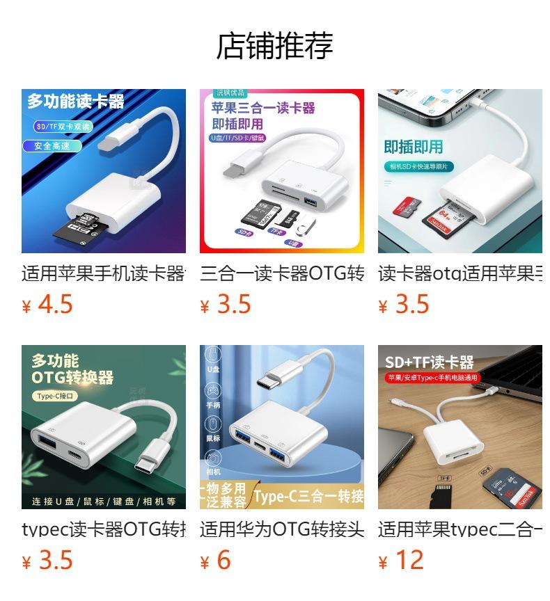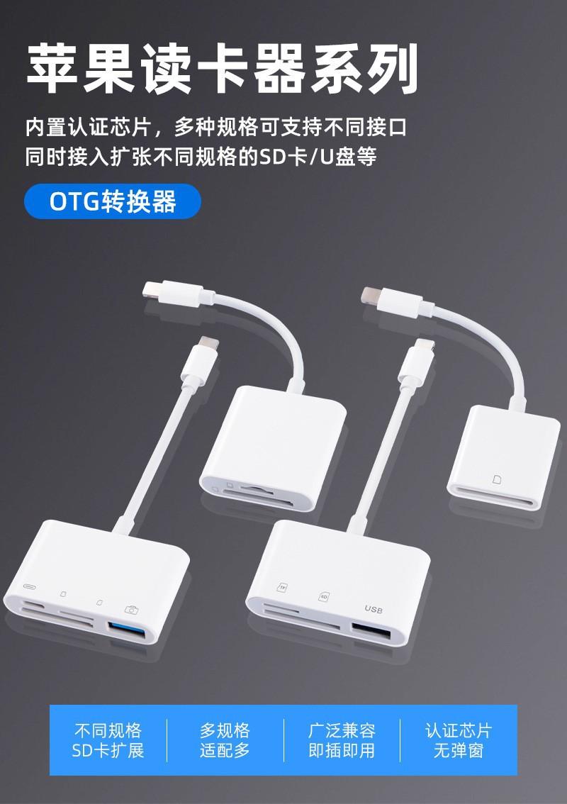 Novo estilo para leitor de cartão otg apple android tipo c conversor de câmera ipad multifuncional três em um