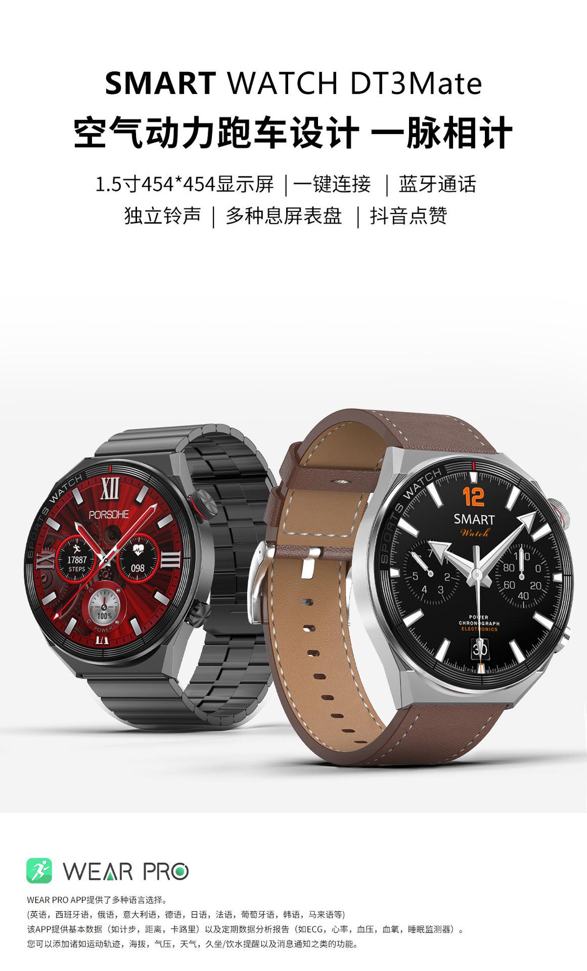 Dt3 Mate Smart Watch Bluetooth Chamada Tela Redonda Masculino Cross-Border Nova Reprodução de Música Assistente de Voz Cronômetro