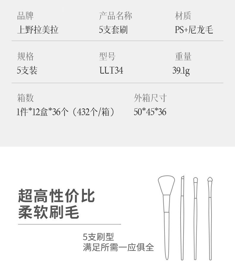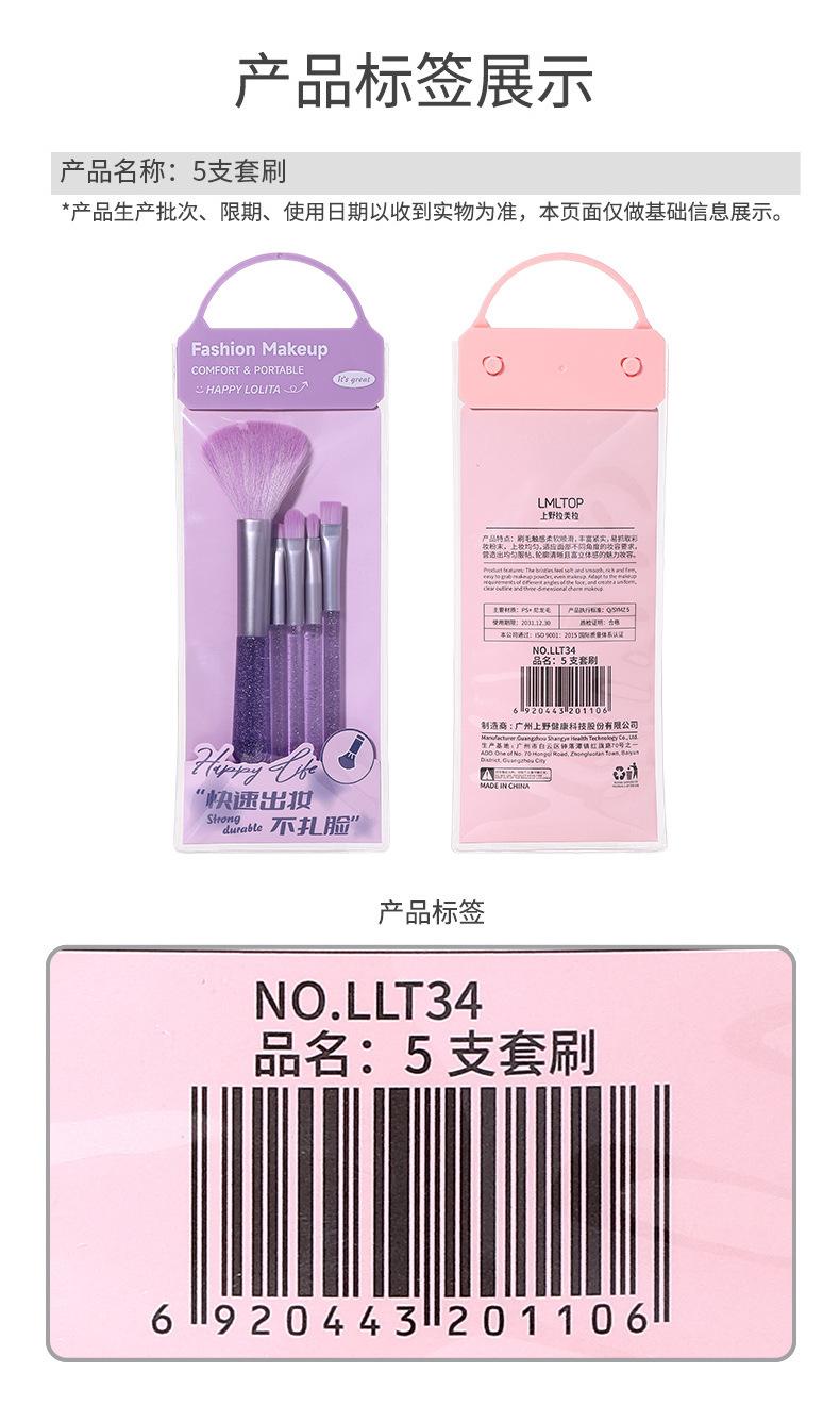 LMLTOP 5 conjuntos de pincéis portáteis soltos pincel para sombra de olhos pincel para lábios pincel para maquiagem ferramenta LLT34