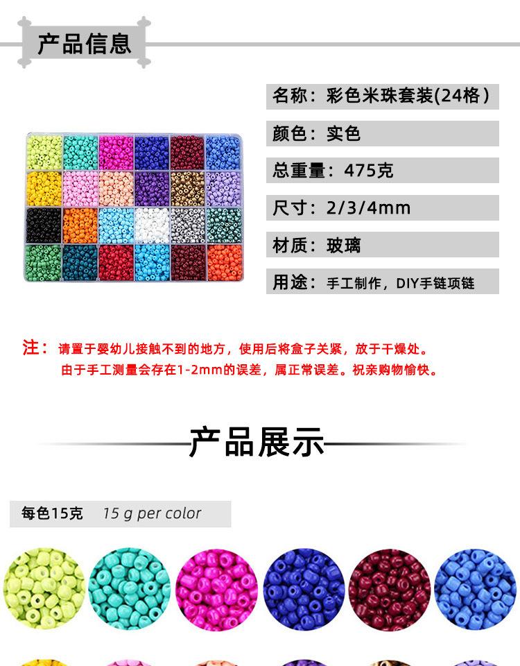 24 colors 2mm solid color rice beads suit about 24000 pieces, 24 color 3mm solid color rice beads suit about 1...