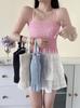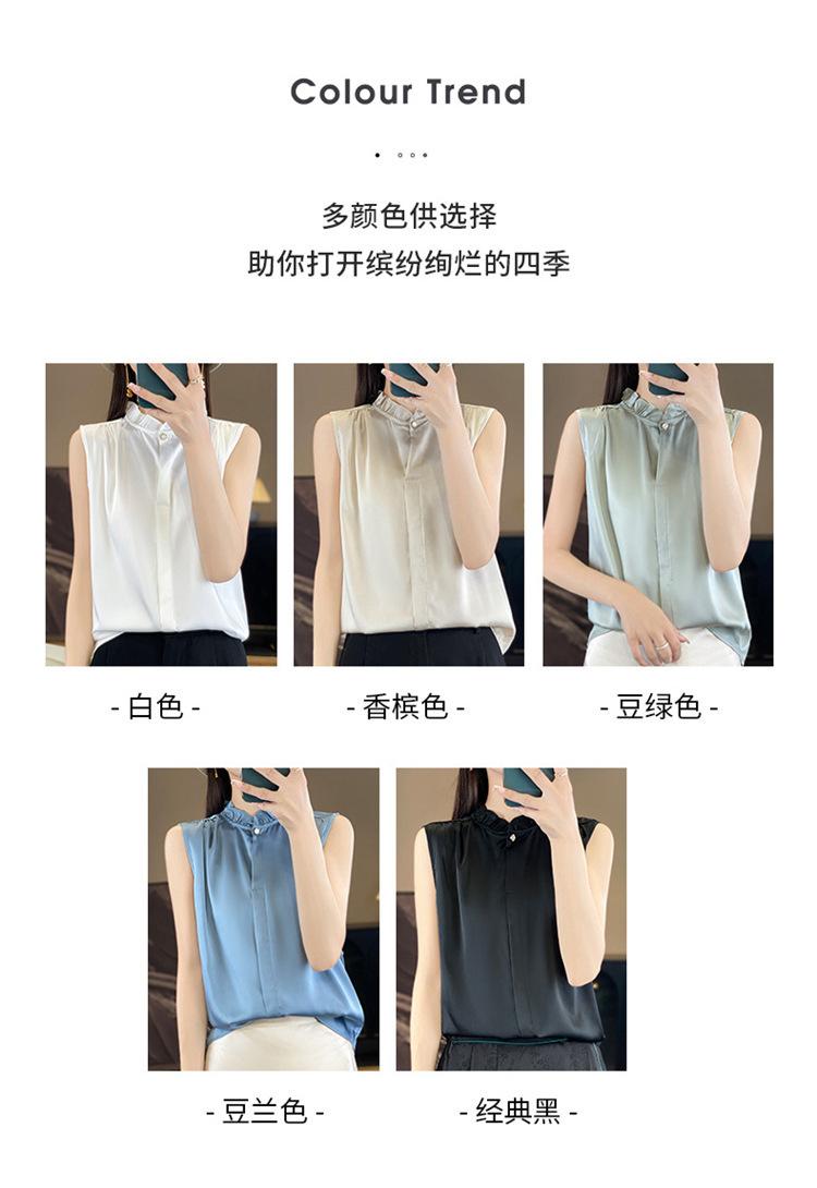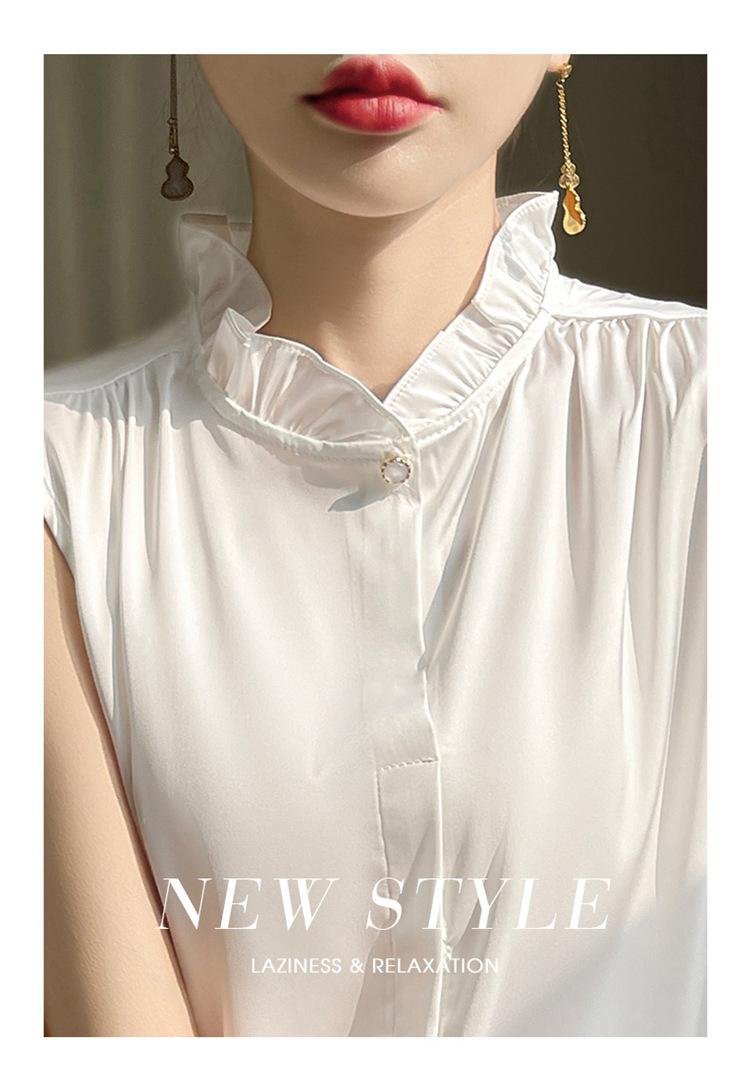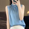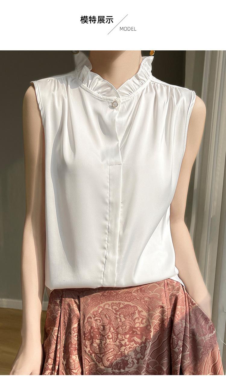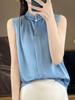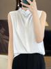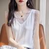 Regata de Renda Transfronteiriça Sem Mangas Cor Sólida Um Botão Seda Gelo Emagrecimento Verão Estilo Fino Camisa para Mulheres Verão