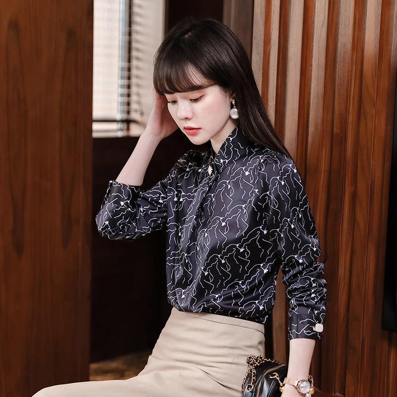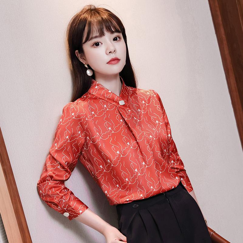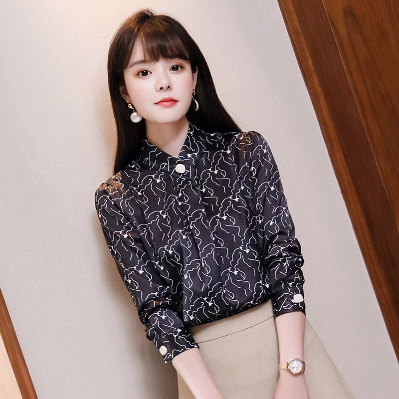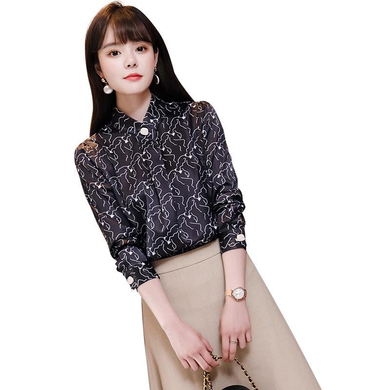 Camisa de chiffon estampada feminina 020 outono nova moda elegante cintura justa top design senso nicho camisa floral
