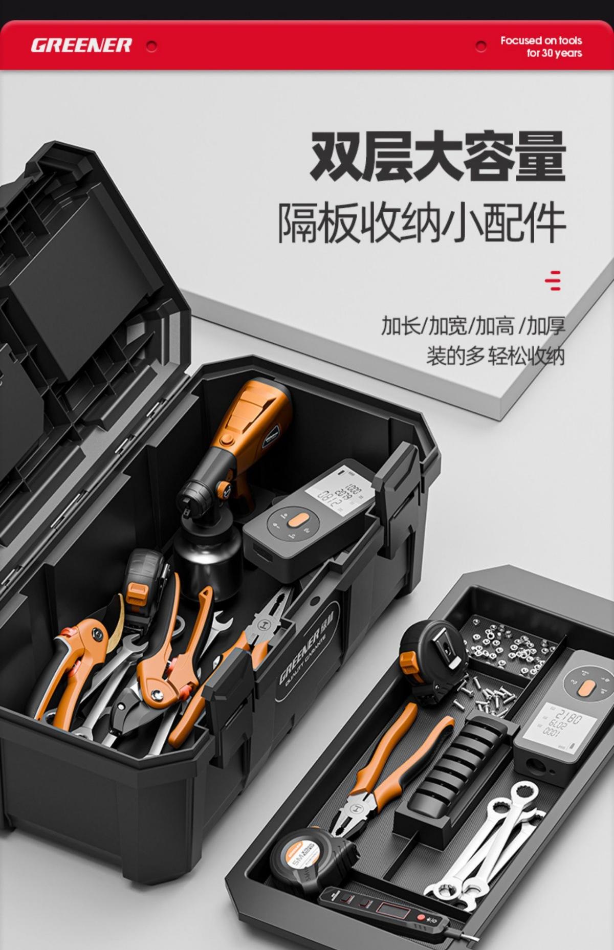 Greenforest Caixa de armazenamento de caixa de ferramentas Elétrica de grau industrial terno Doméstico Multifuncional Hardware Carro Caixa de plástico espessado