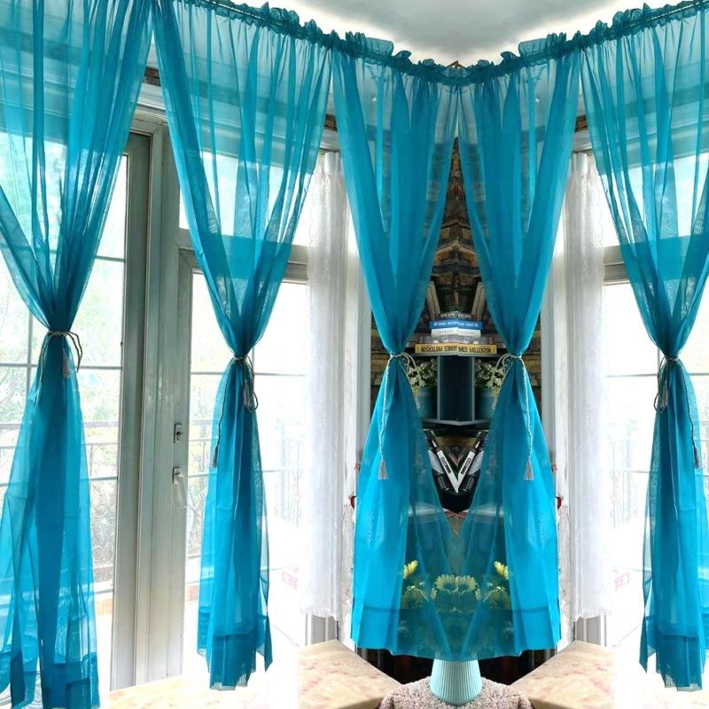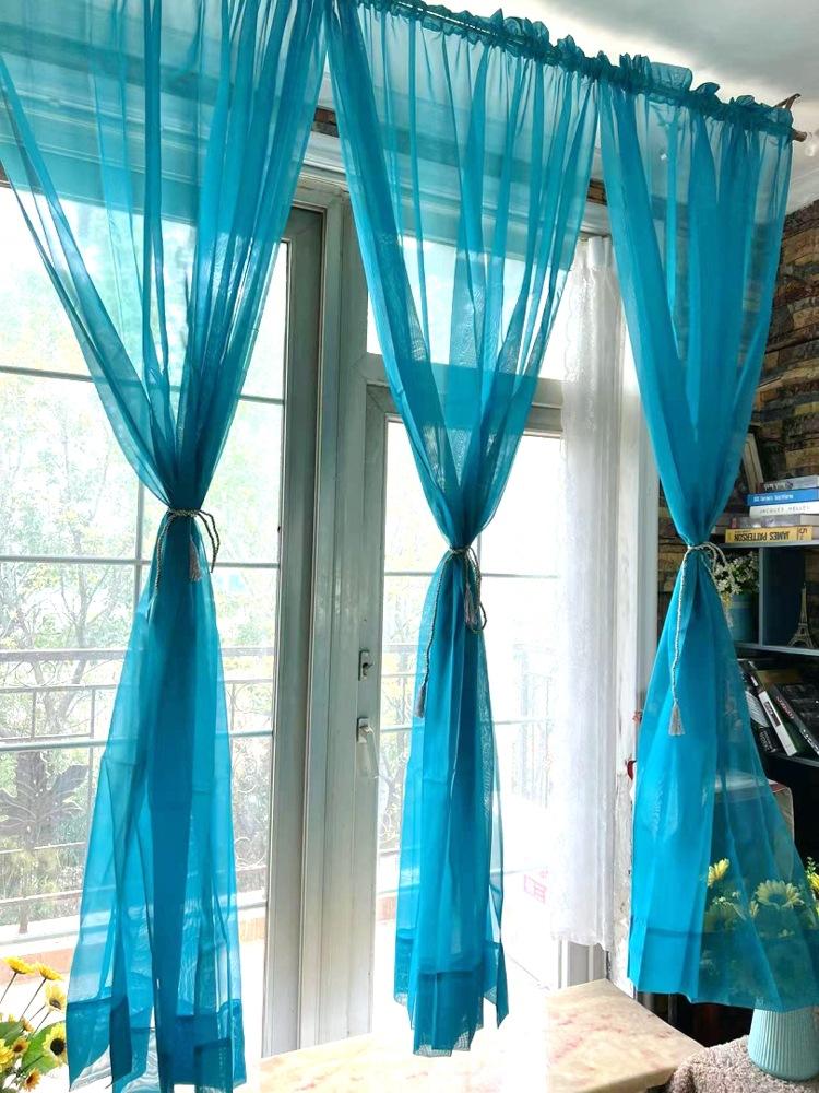 Cortina de cor sólida simples janela de sacada varanda lago azul cortina de cor sólida tela de cortina, cortina pequena azul divisória novo produto