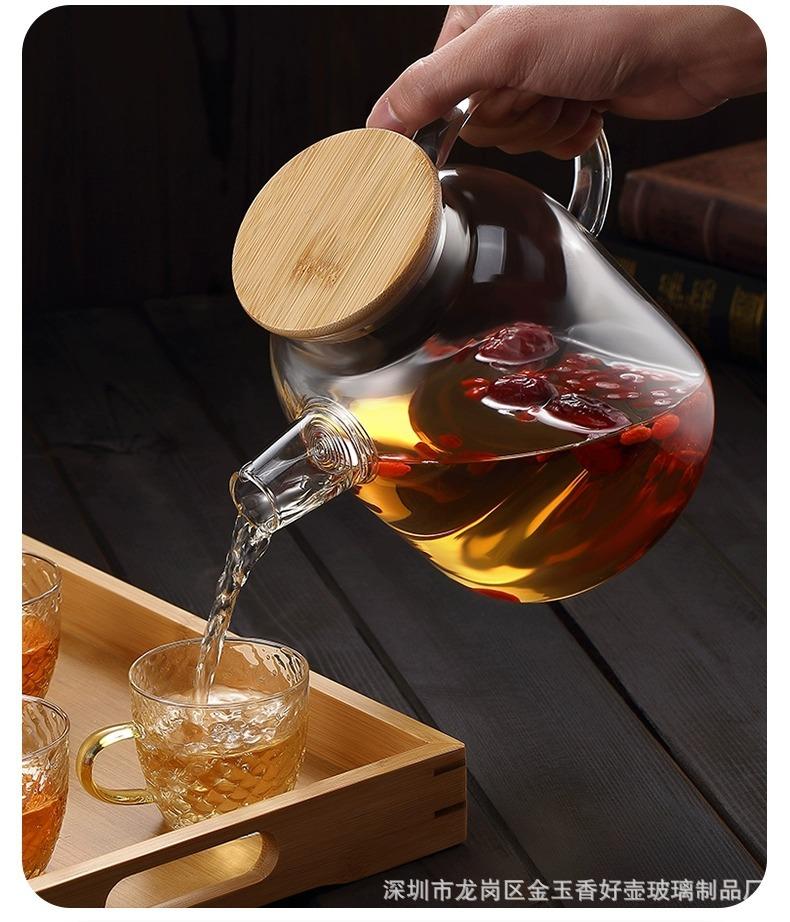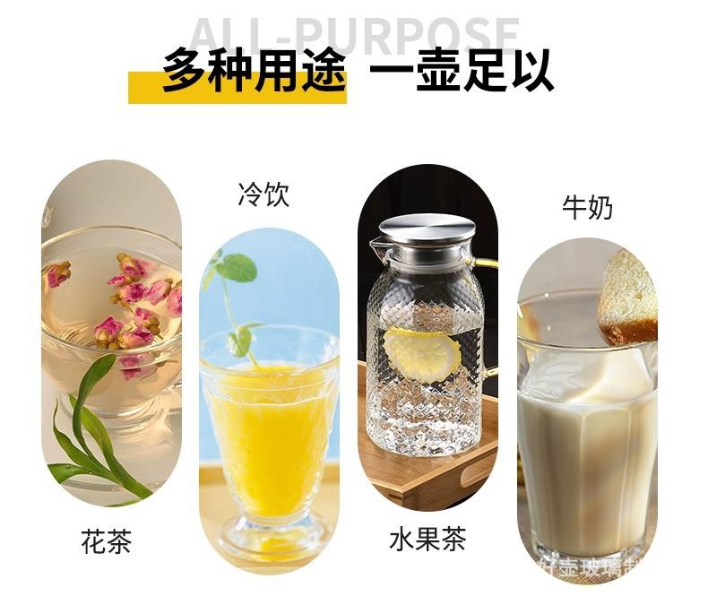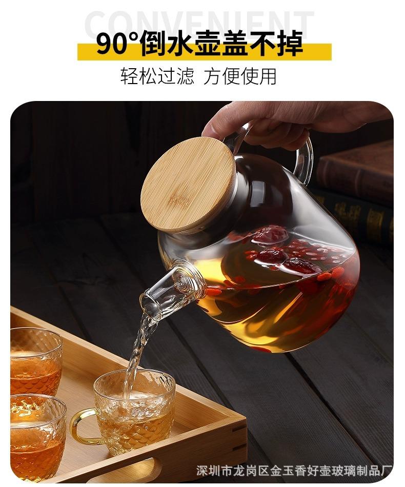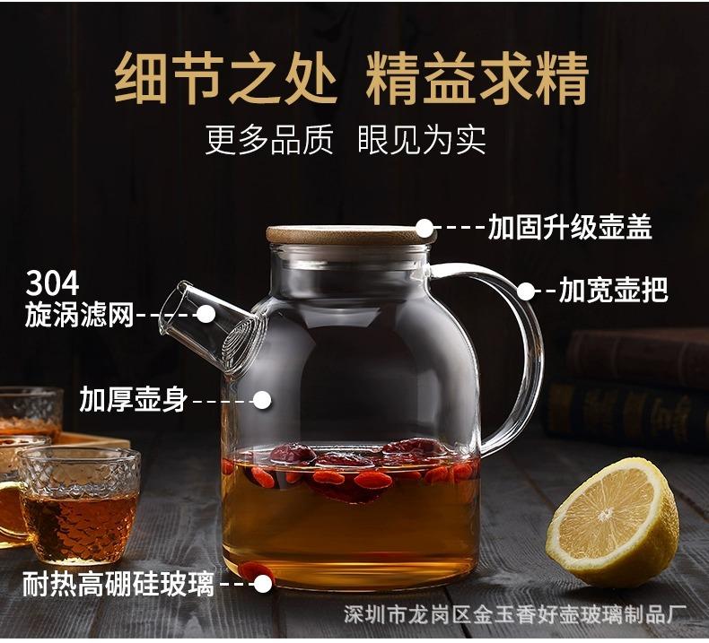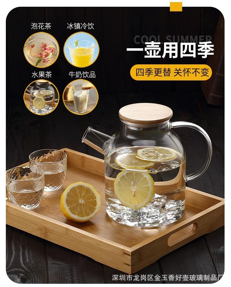 Chaleira fria de vidro resistente a altas temperaturas chaleira doméstica bule de água fria bule de chá de frutas de grande capacidade copo de água fria branco aberto terno