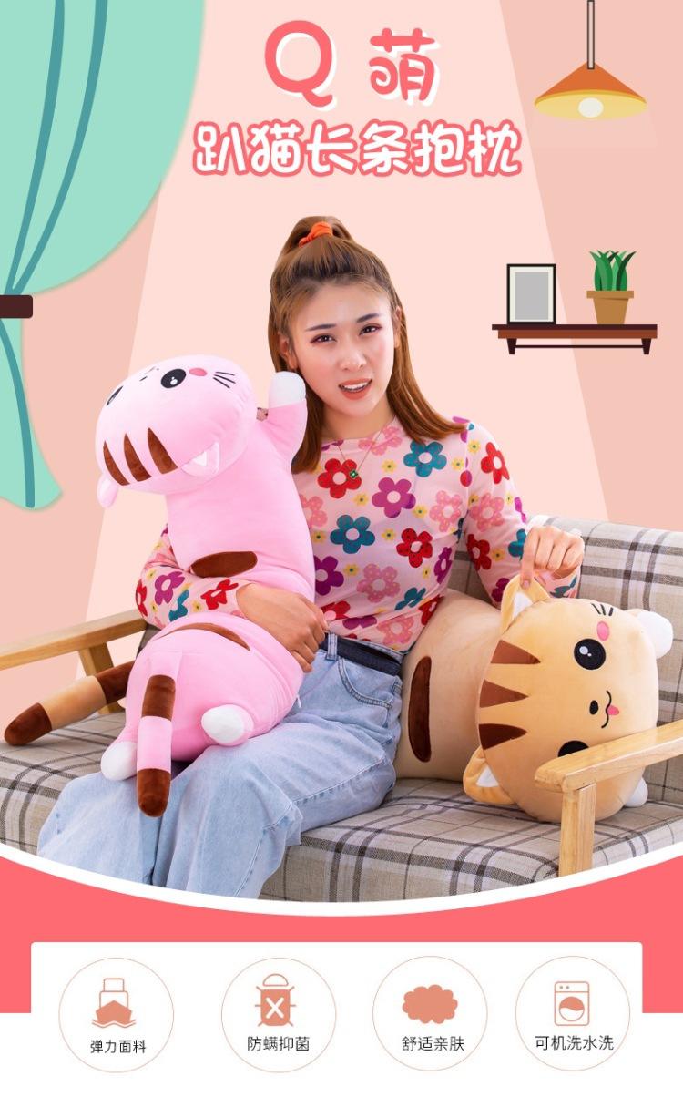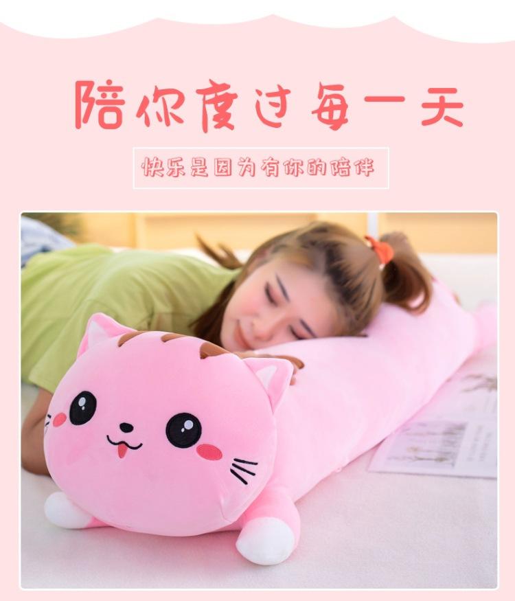 Compre Brinquedo de pelúcia longo deitado gato animal travesseiro desenho animado software dormir boneca presente aniversário atacado no atacado no Joom.pro