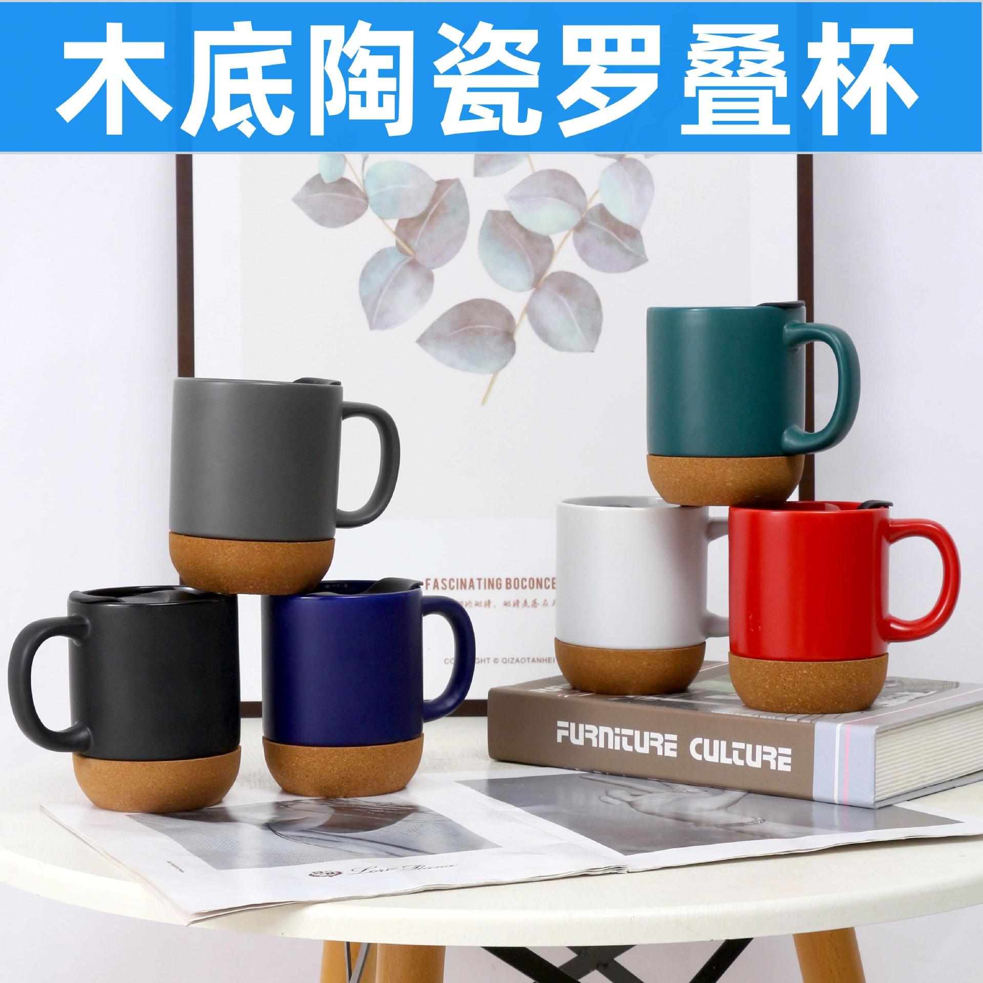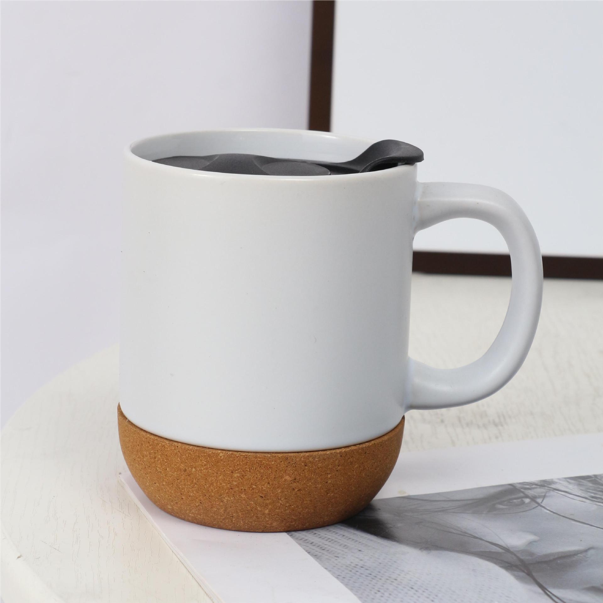 Copo de Cerâmica com Fundo de Cortiça Fosco Personalizado com Logotipo Criativo Caneca Fosca com Tampa Exportação Transfronteiriça Exportação Xícara de Café