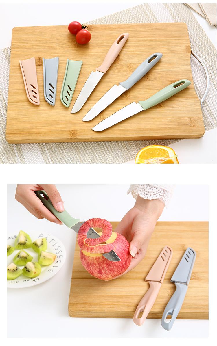 Faca de frutas de aço inoxidável com capa de faca Faca de descascar de plástico para cozinha e casa Faca de melão e frutas Presente Atacado Faca Descascadora