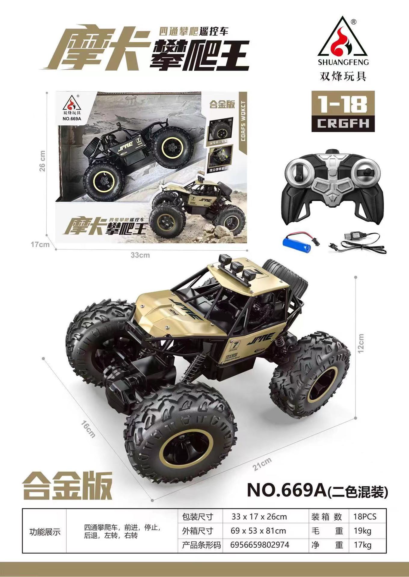 Remote control climbing car golden 1:18
