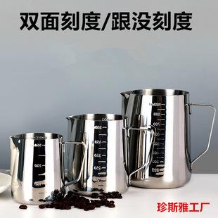 Copo de puxar flor de aço inoxidável 304 com boca pontiaguda e copo de medição de escala, cilindro de puxar flor de café espessado, copo de cera derretida