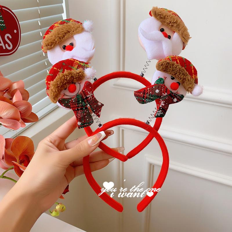 Gold antler headband (b3752), Red antler headband (b3754), Red antler fruit headband (h1711), Snowman scarf he...