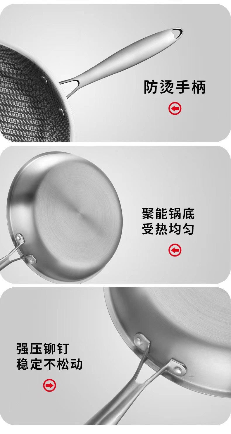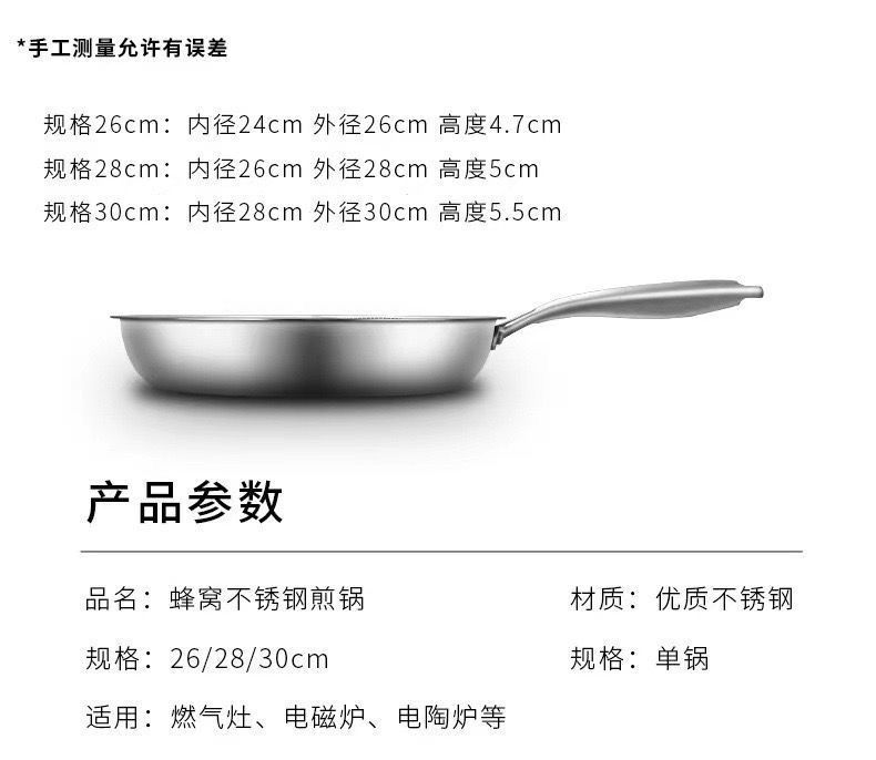 Frigideira Wok de Aço Inoxidável Sem Revestimento em Favo de Mel Frigideira Doméstica Pequena Panqueca Ovos Fritos Flapjack Bife Frigideira