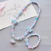 Conjunto de colar e pulseira de desenho animado colorido infantil, acessórios para meninas, joias de princesa fofas, caixa de presente, joias para meninas com miçangas