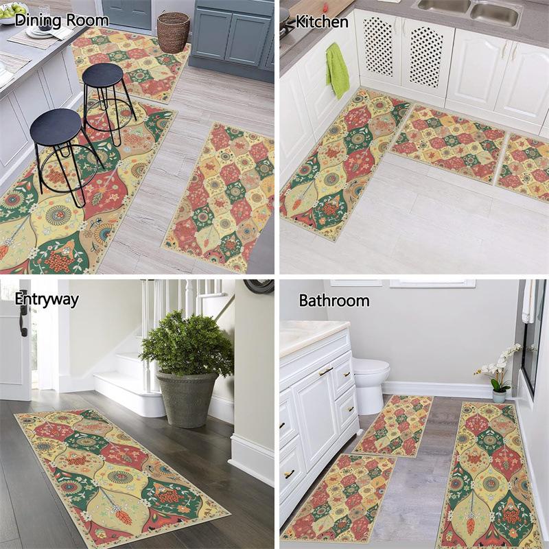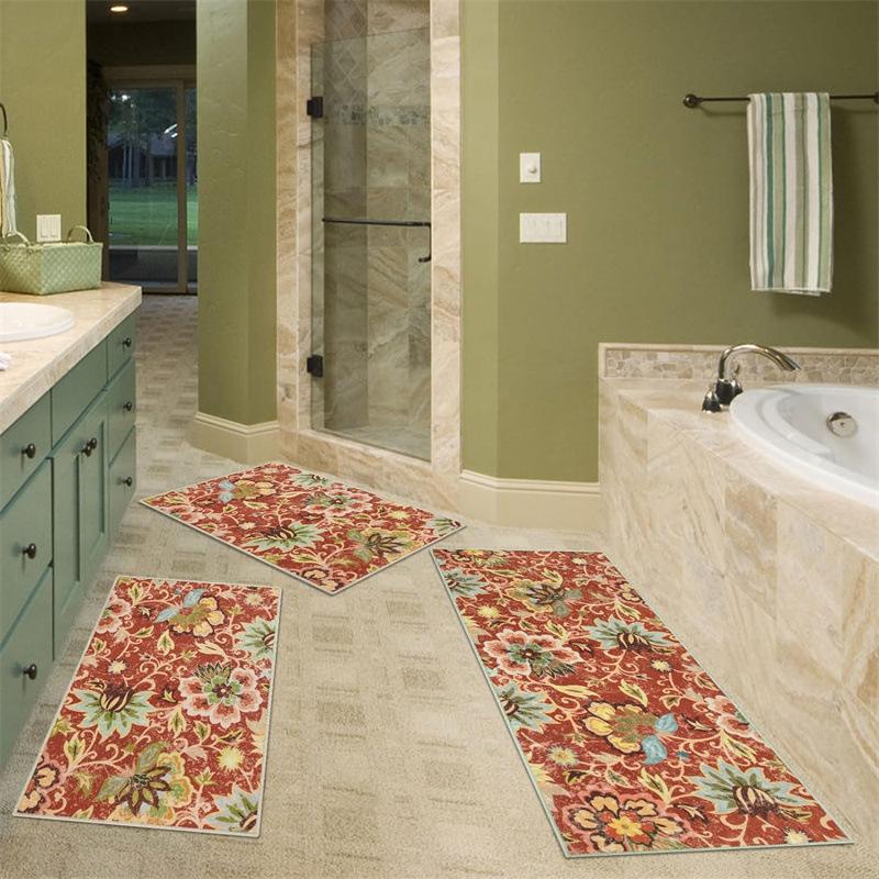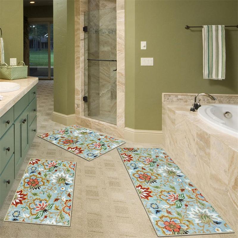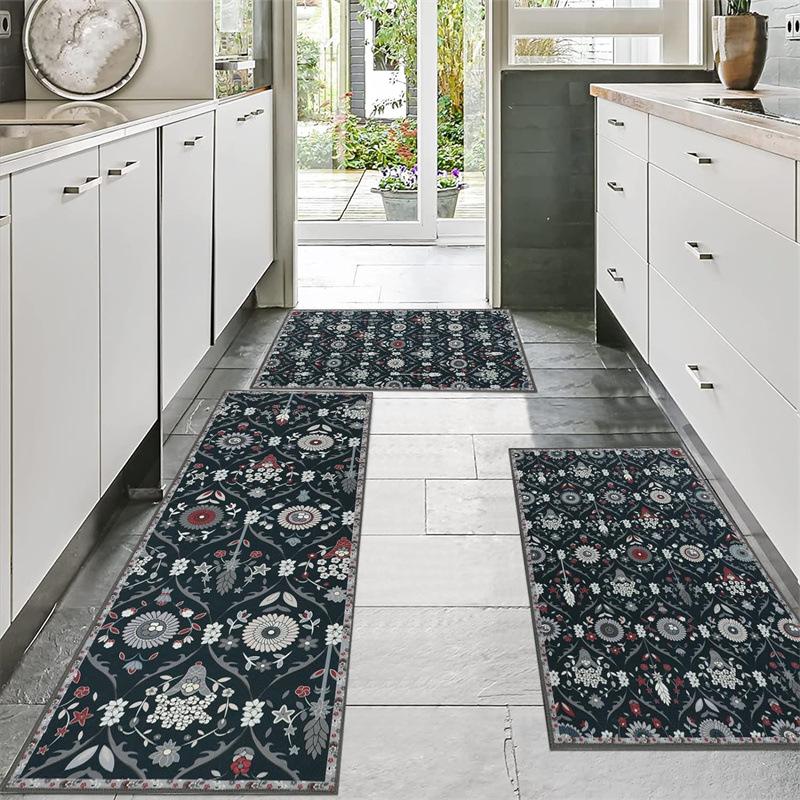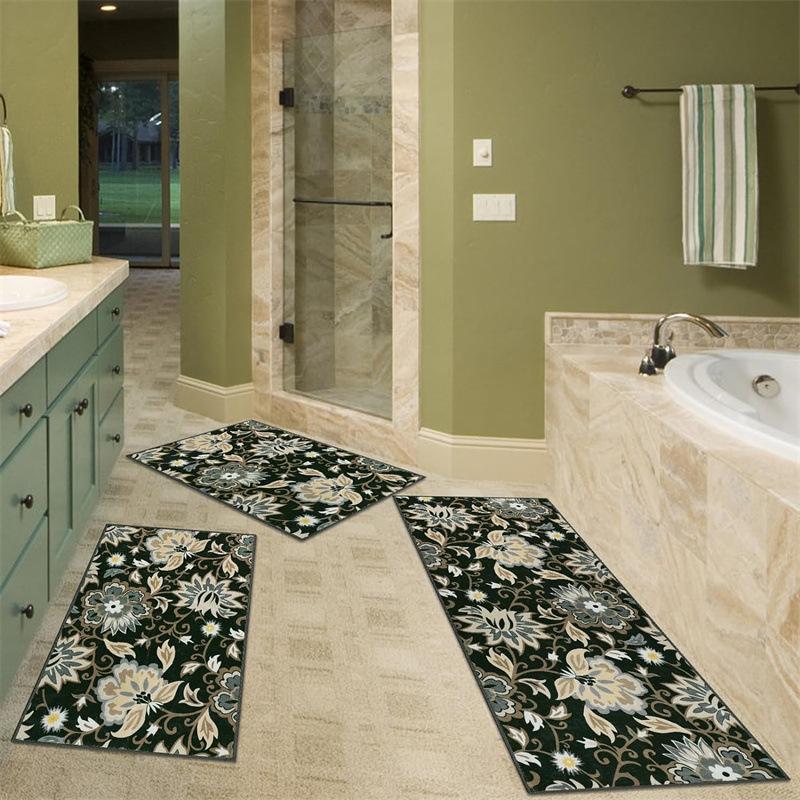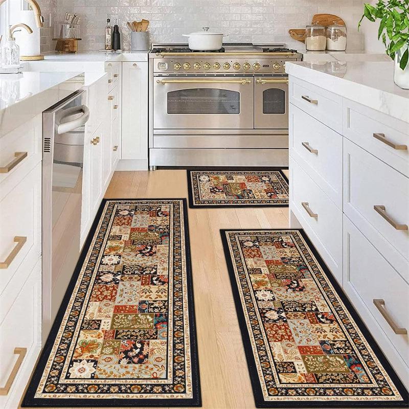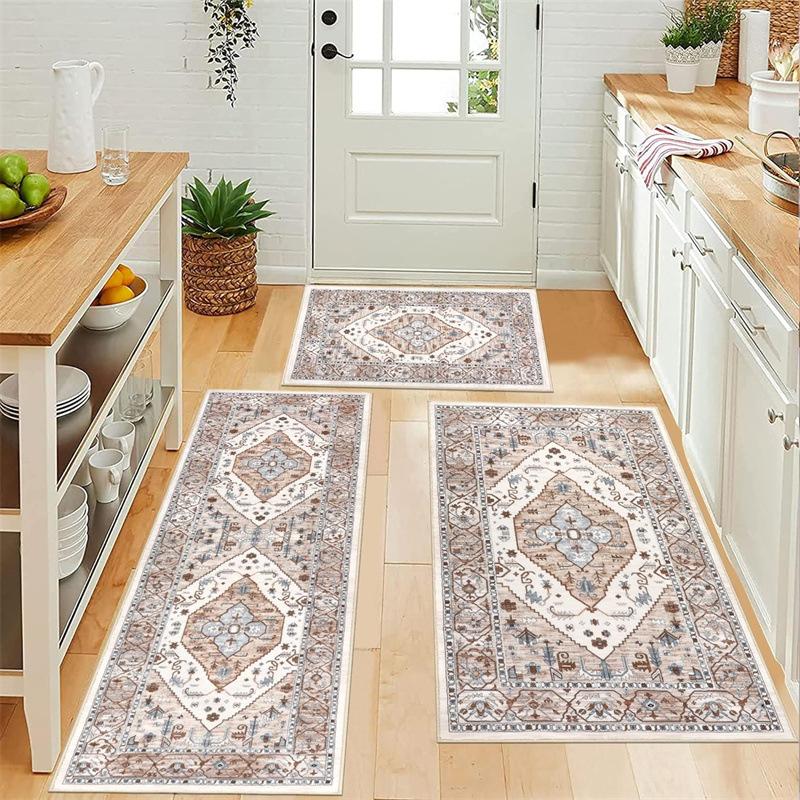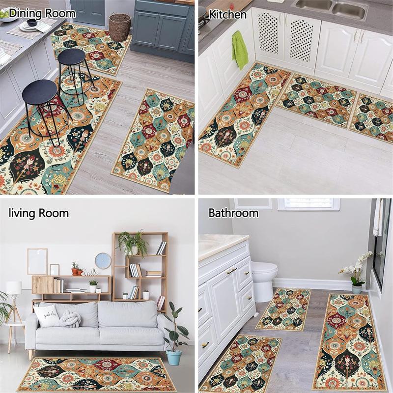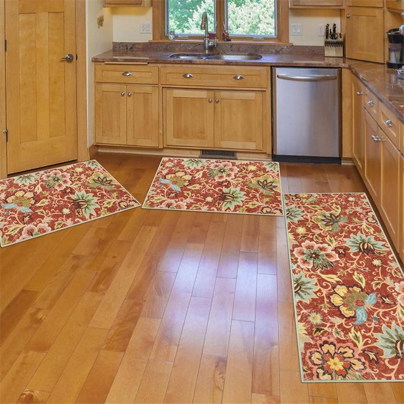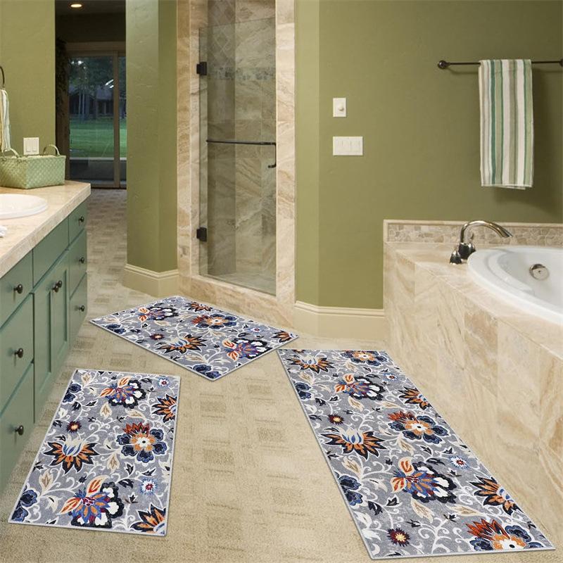 Tapete de três peças para sala de estar com flor Luoshen persa transfronteiriça, tapete antiderrapante para cabeceira do quarto, tapete de sofá, tapete de fácil manutenção