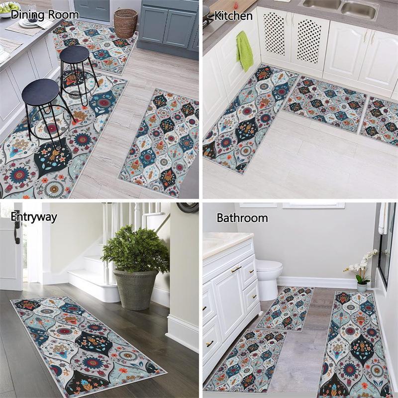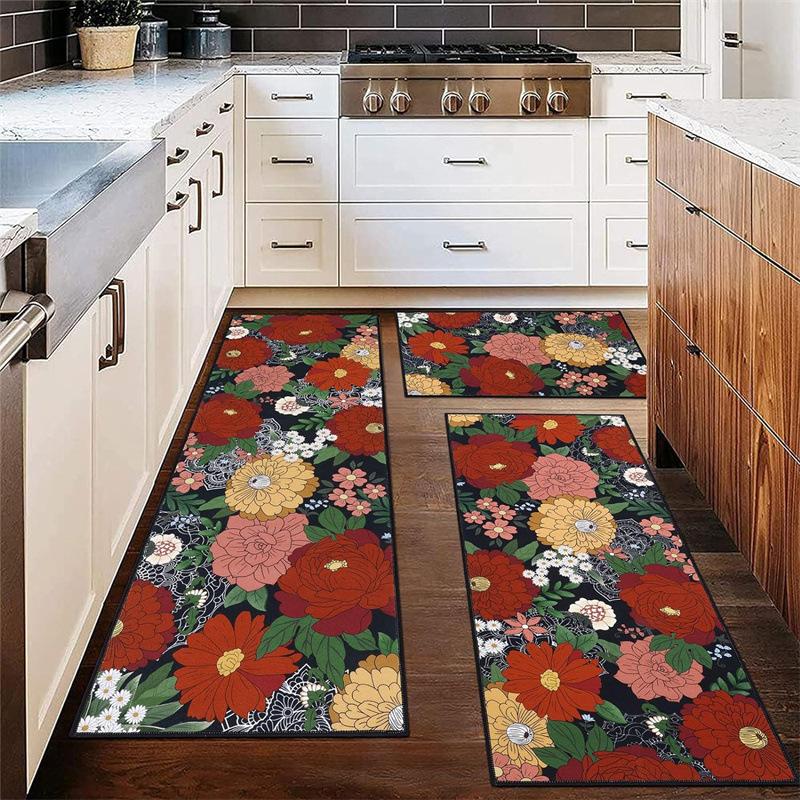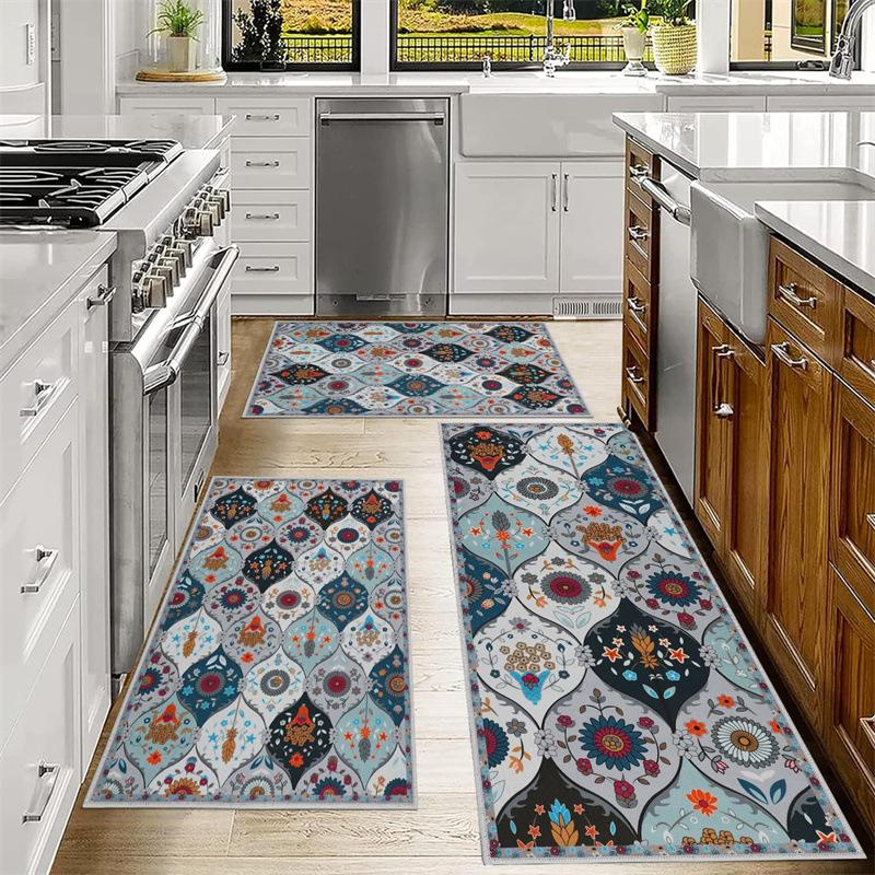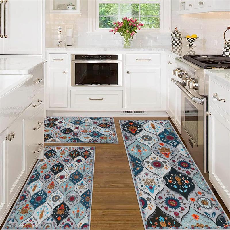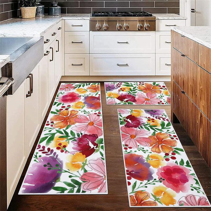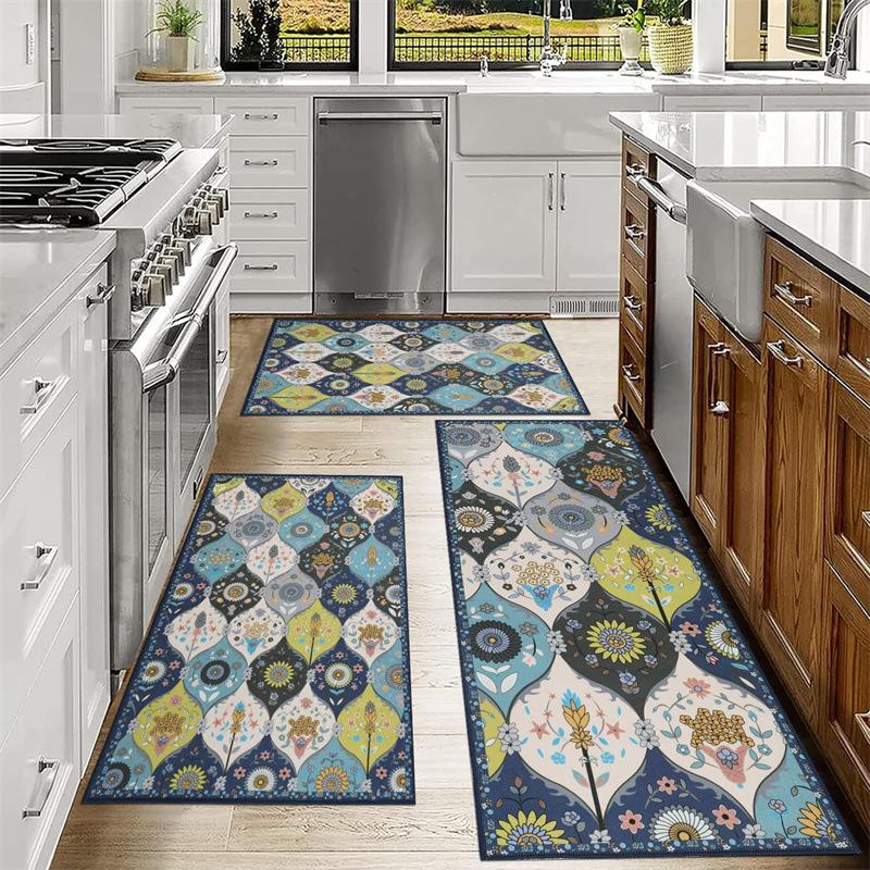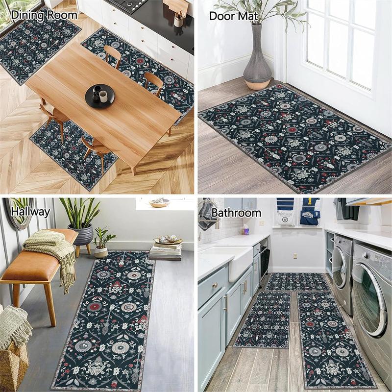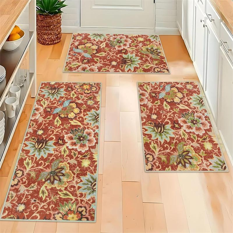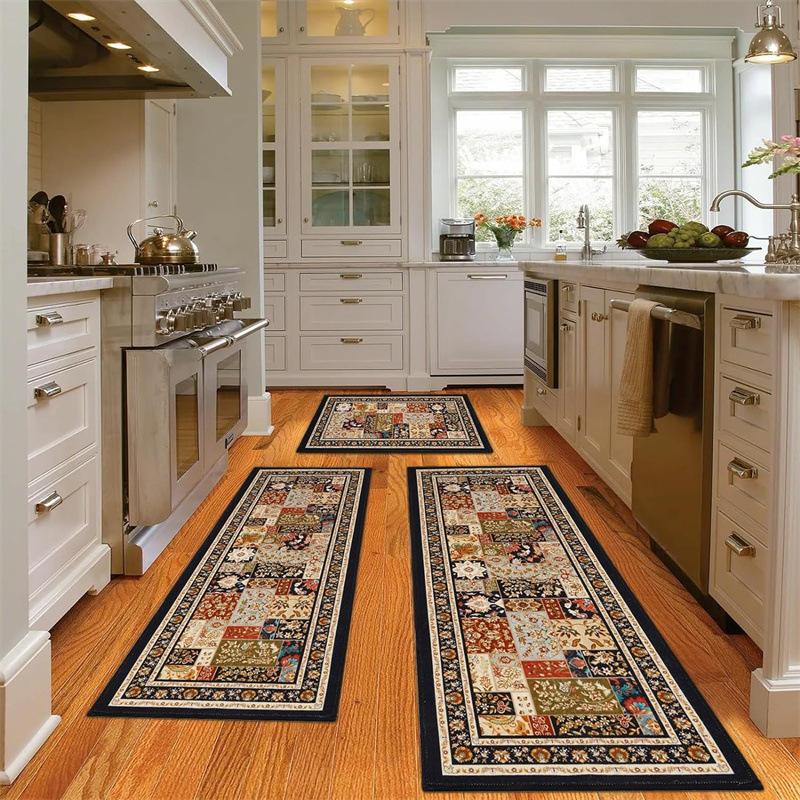 Tapete de três peças para sala de estar com flor Luoshen persa transfronteiriça, tapete antiderrapante para cabeceira do quarto, tapete de sofá, tapete de fácil manutenção